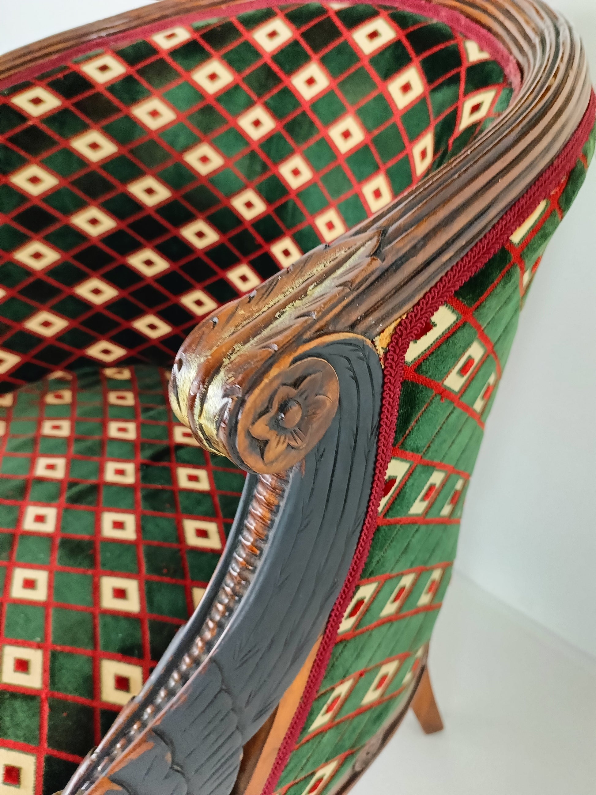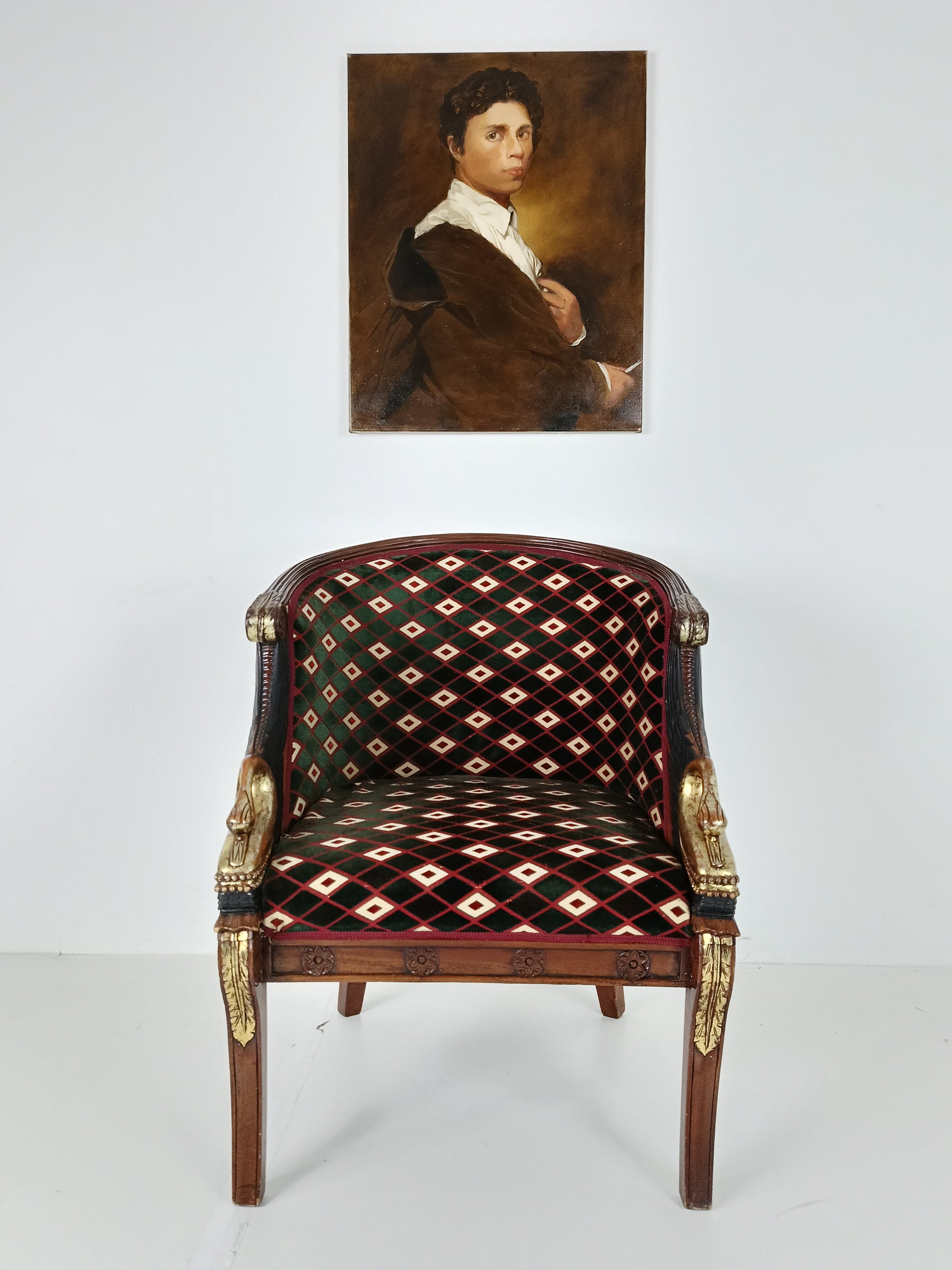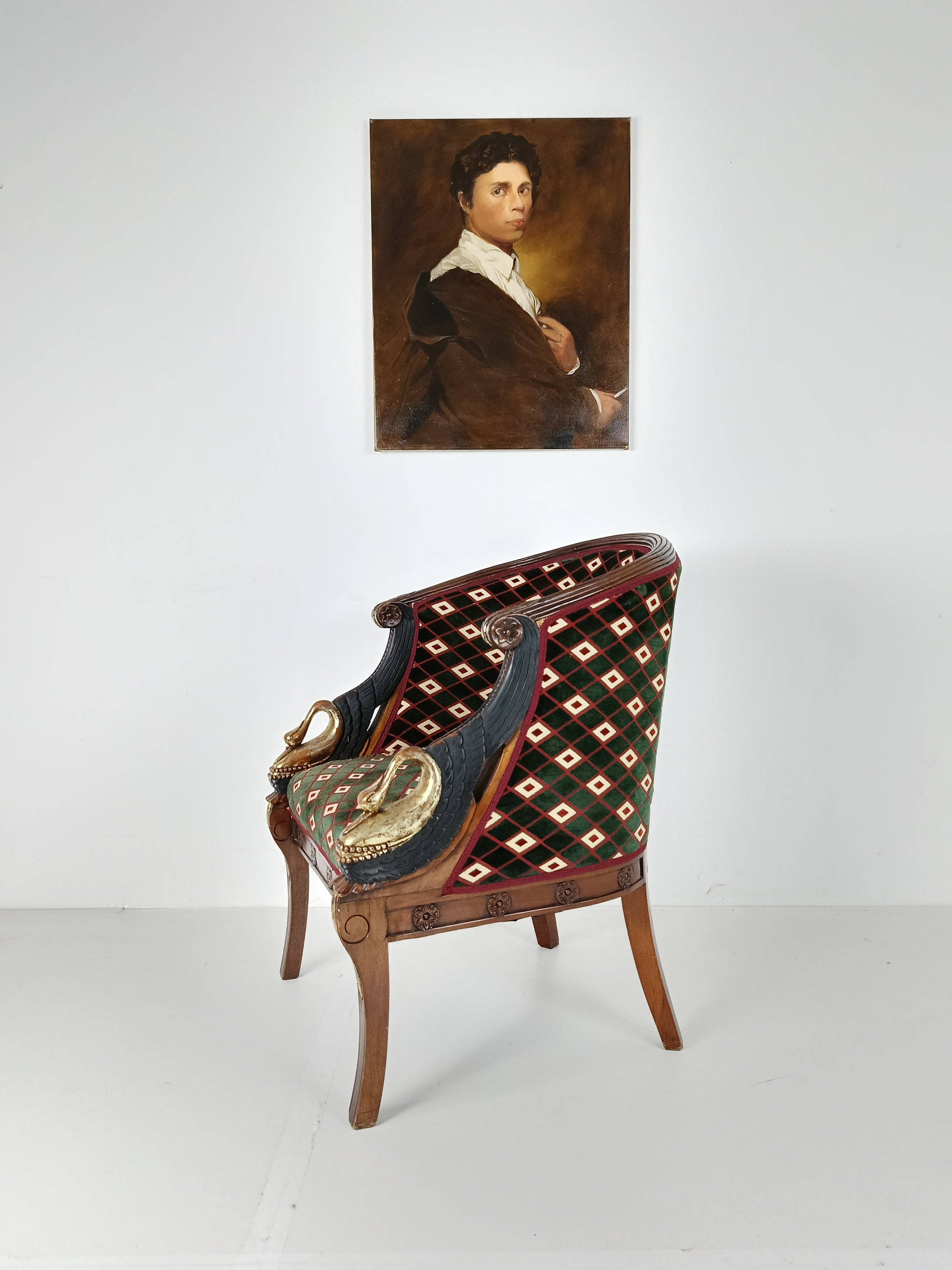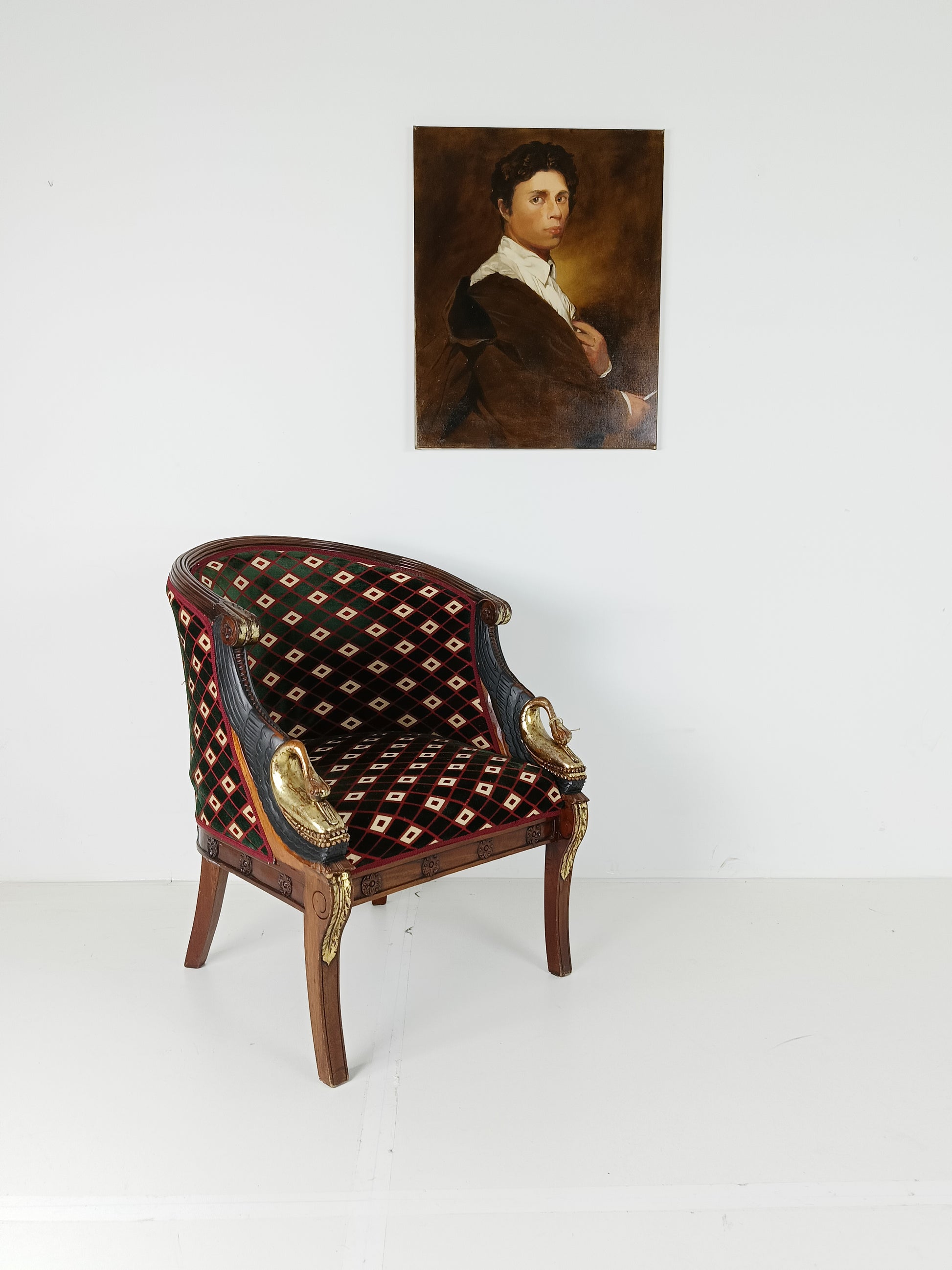 True classic swan chair. Embrace elegance with this antique chair, featuring exquisitely carved swan details that add a touch of timeless grace to any space. Has signs of wear consistant with age and patina.