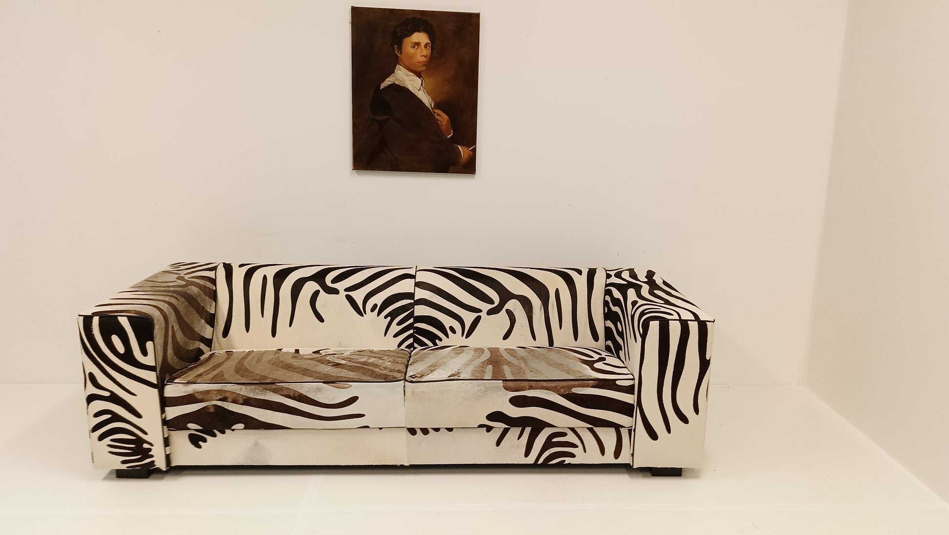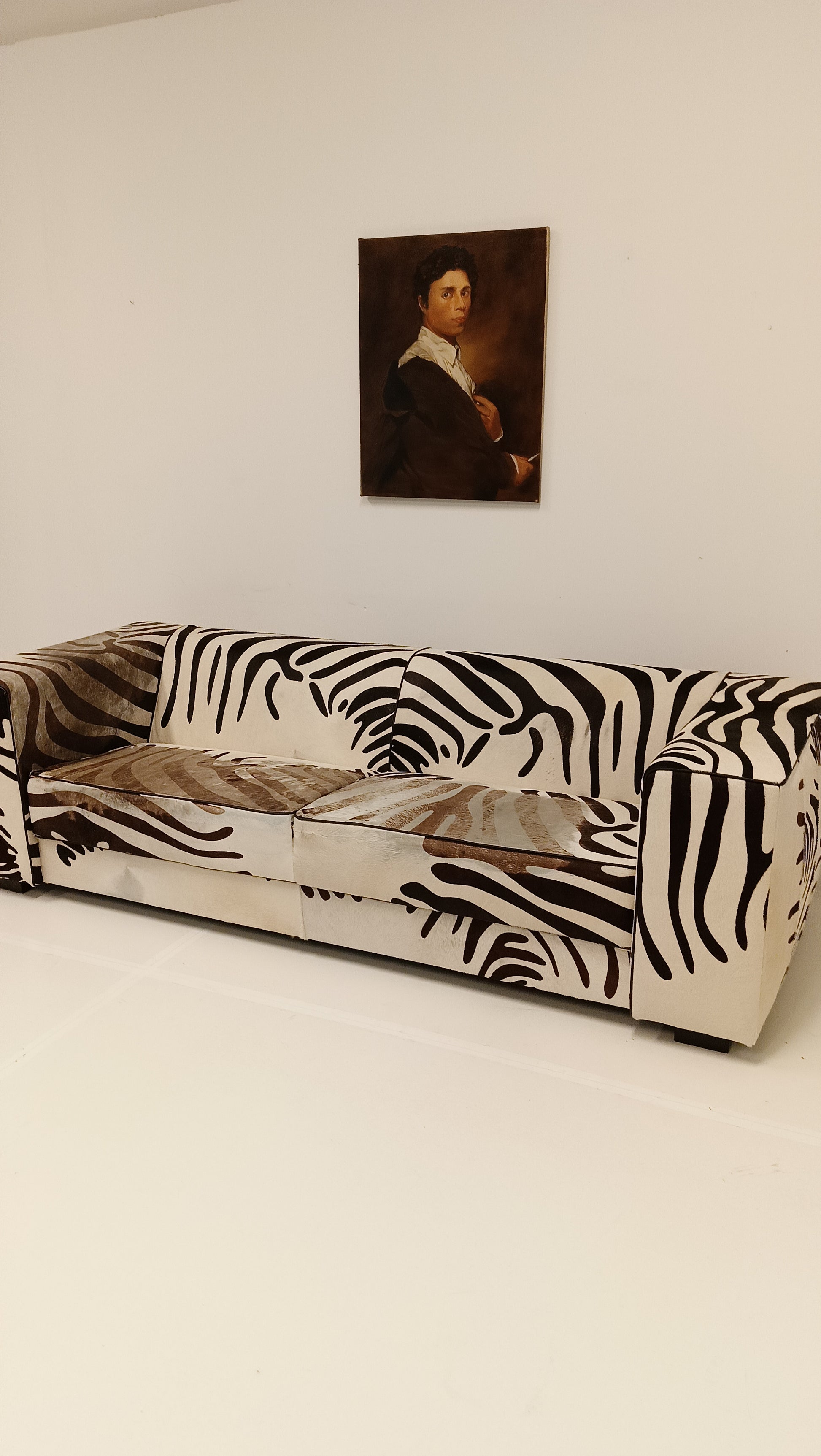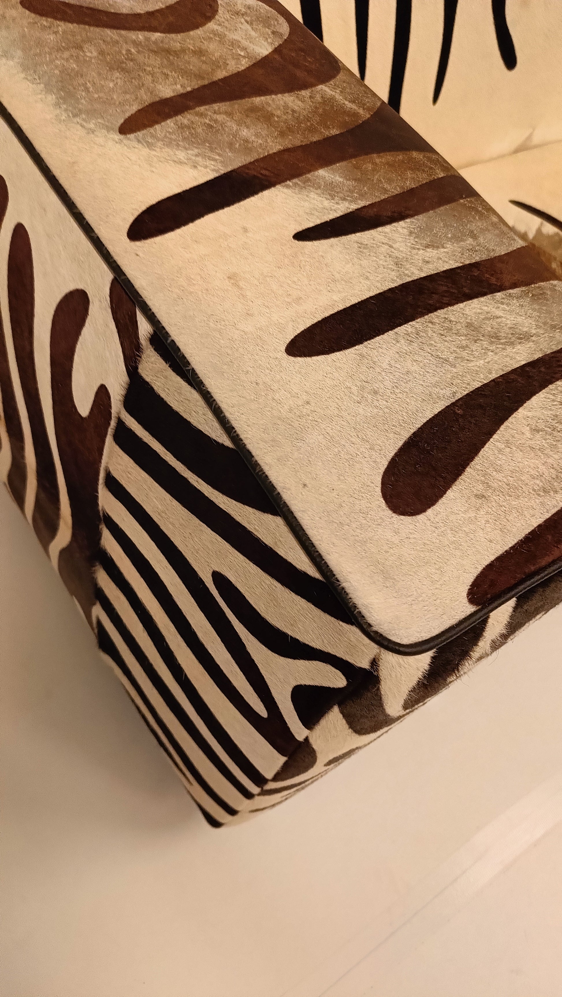 This zebra-style sofa, made from cowhide, combines striking design with natural materials. Its bold pattern adds a touch of exotic flair, while the high-quality cowhide ensures durability and comfort. Perfect for making a stylish statement in any living space.