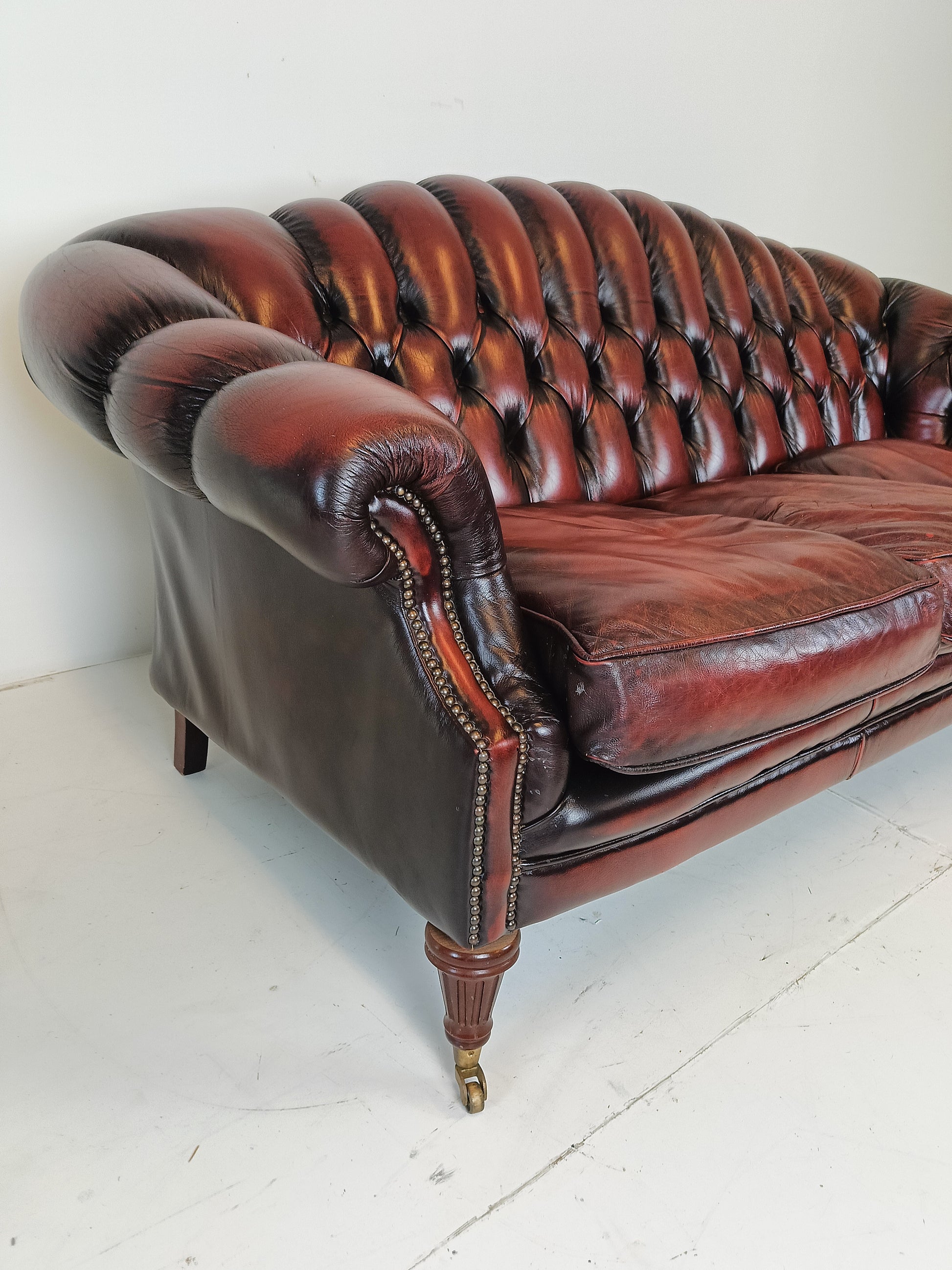 Oxblood Real Leather Chesterfield sofa