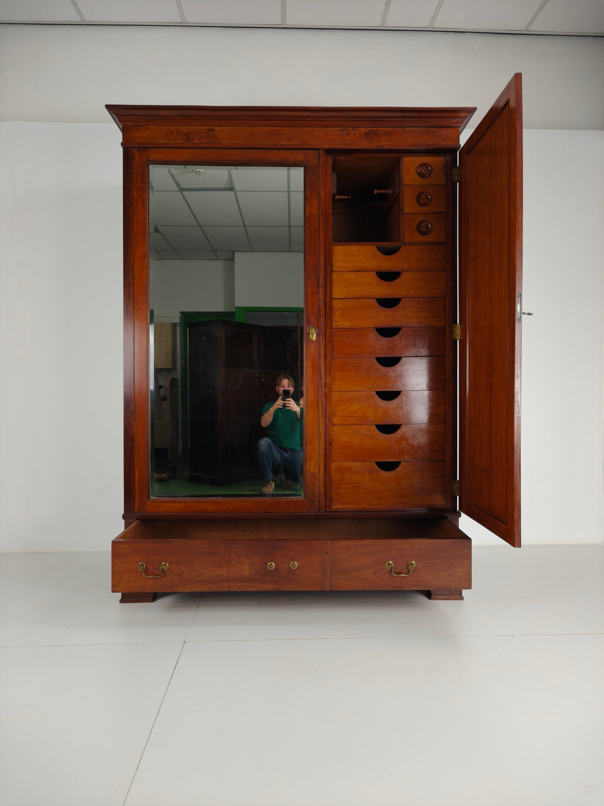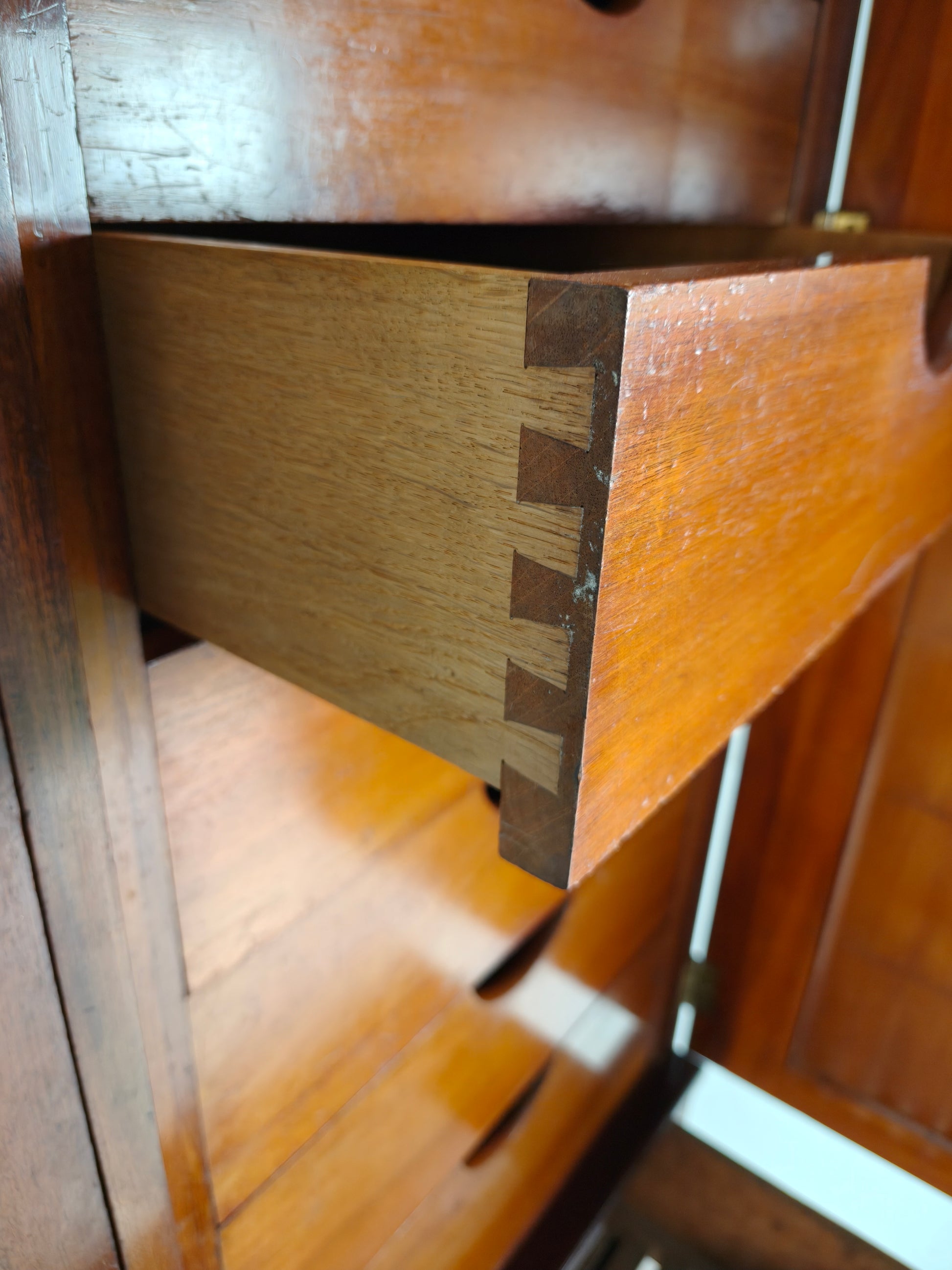 15 drawers constructed with traditional dovetail joints, ensuring durability and craftsmanship