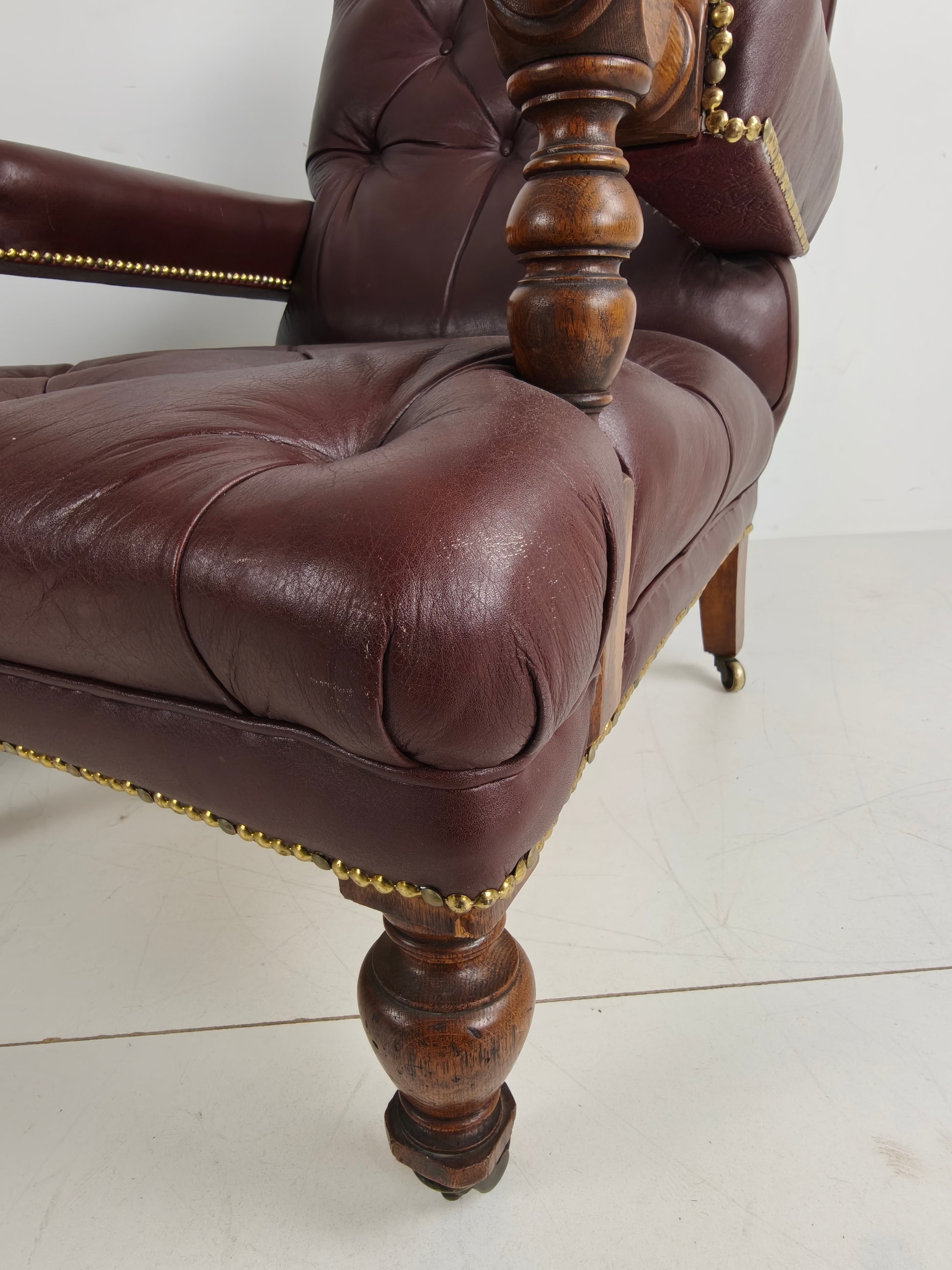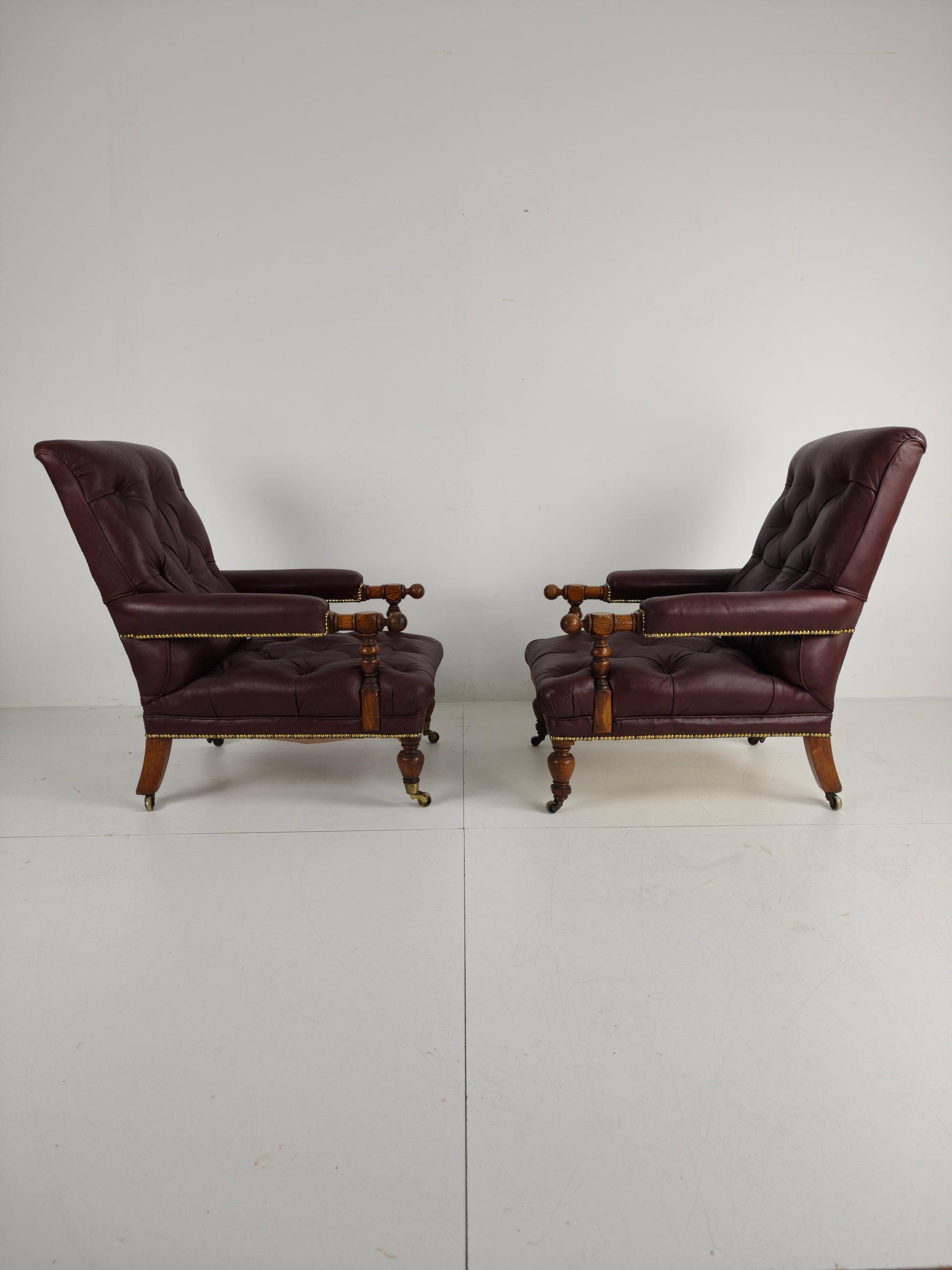 Fine Pair of Antique Library Chairs - Original William Morris & Co Edinburgh Stamped Armchairs