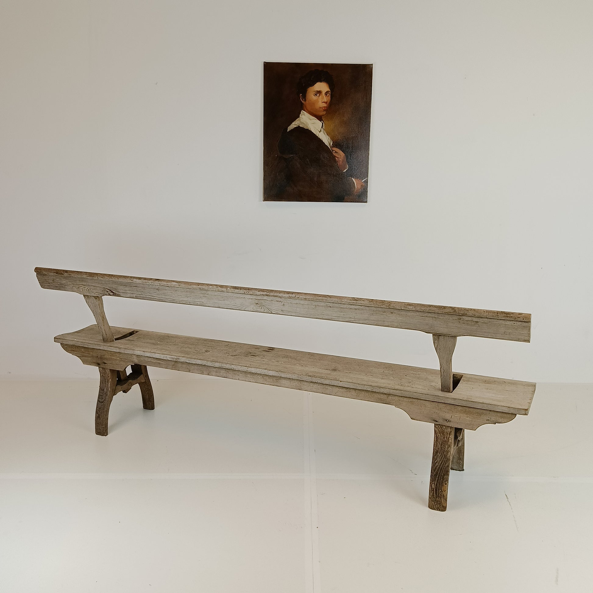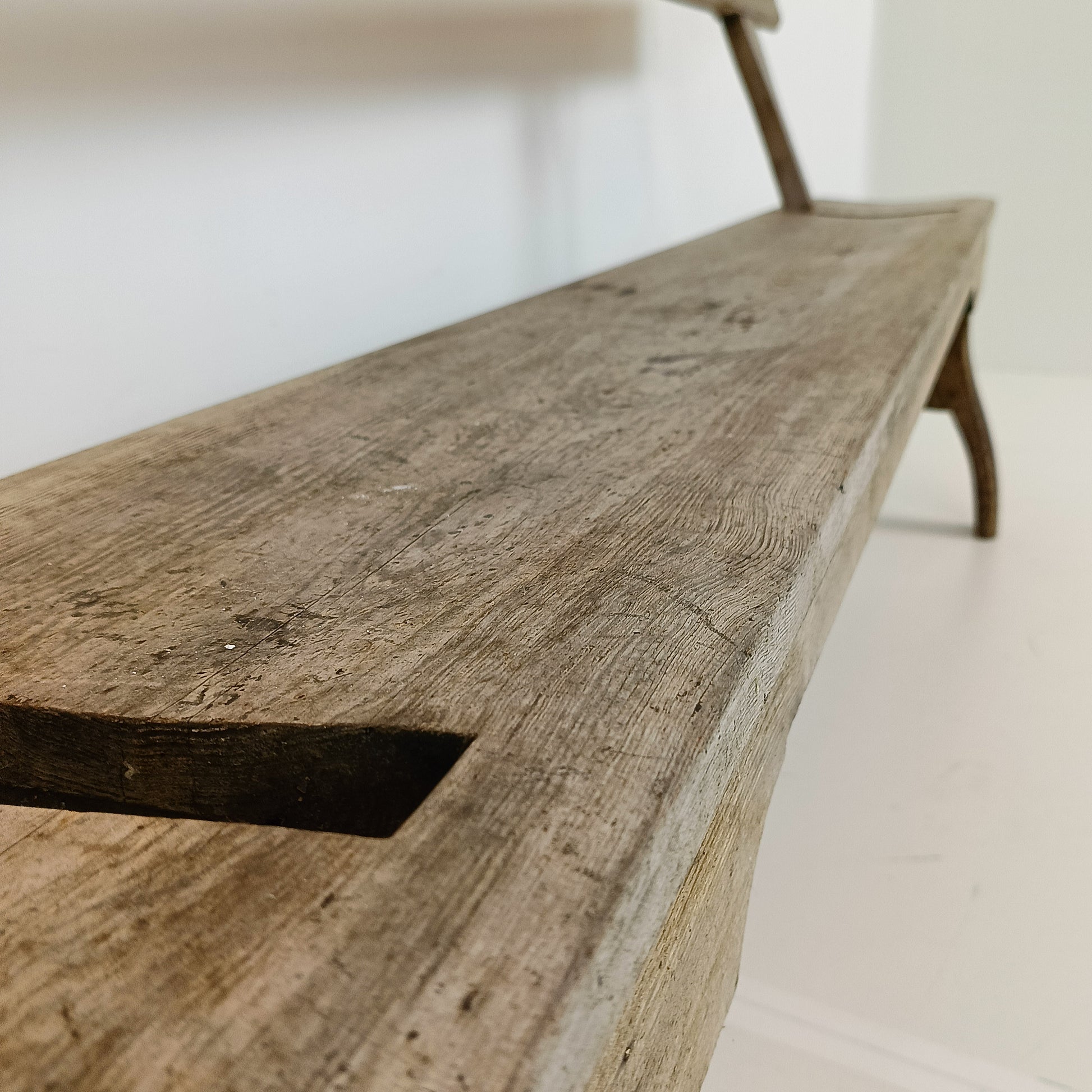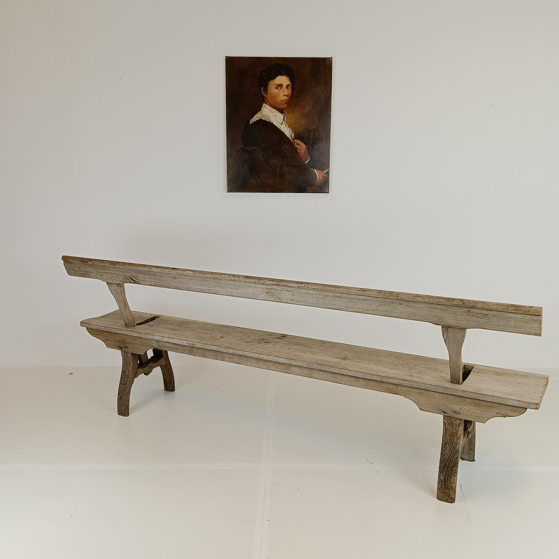 With stunning patina. The bench features an ingenious swing-back design, so it can be sat on from both sides while waiting for the train to arrive.