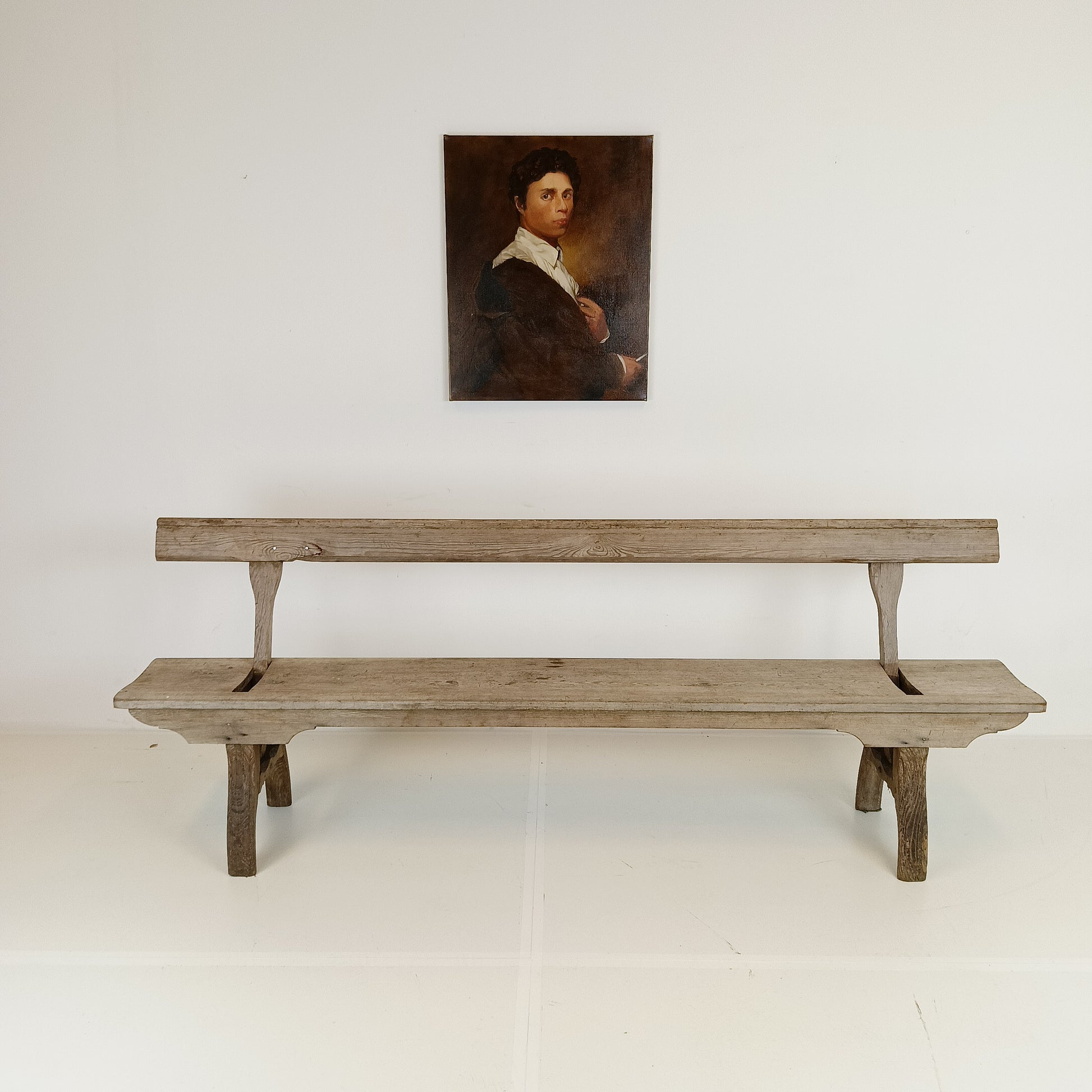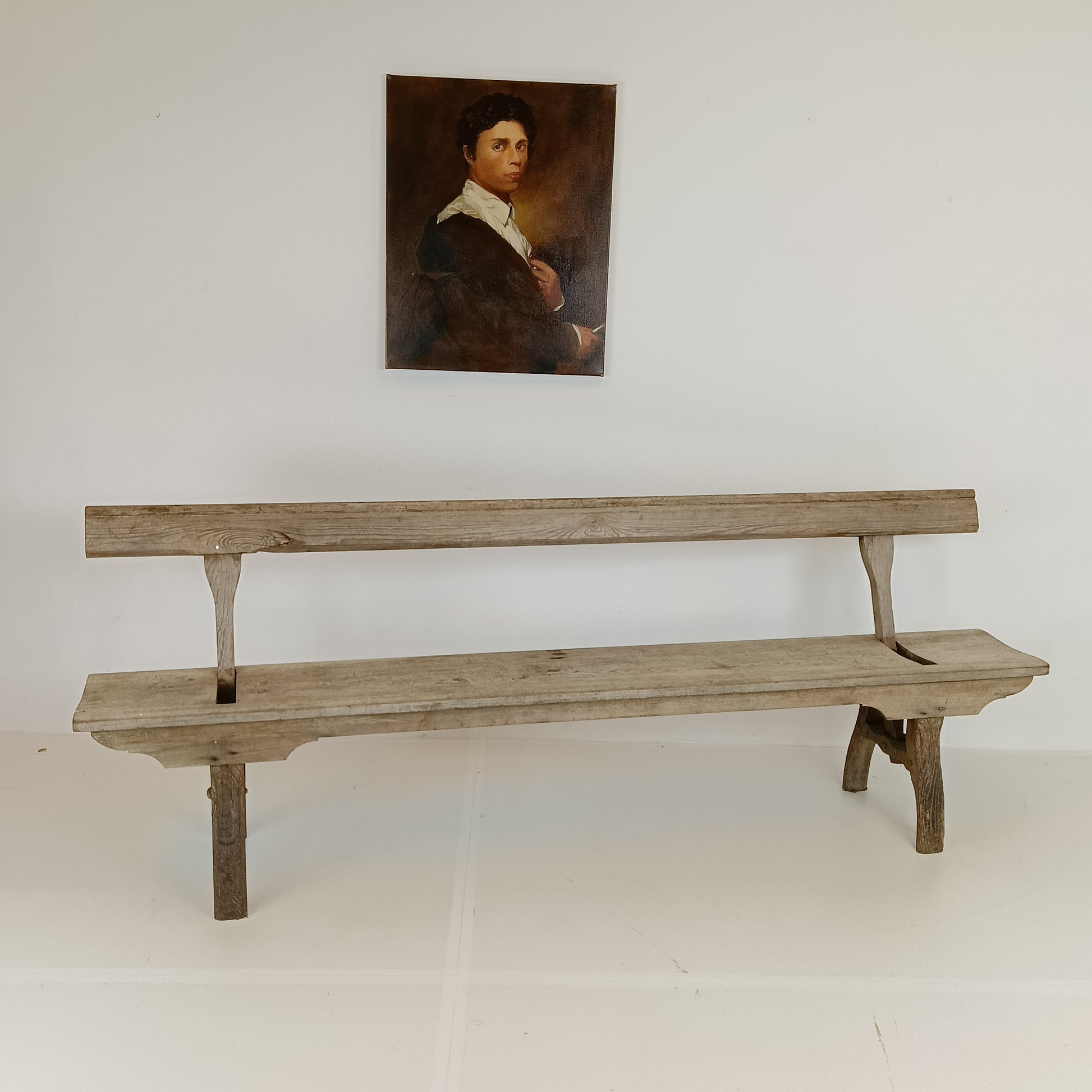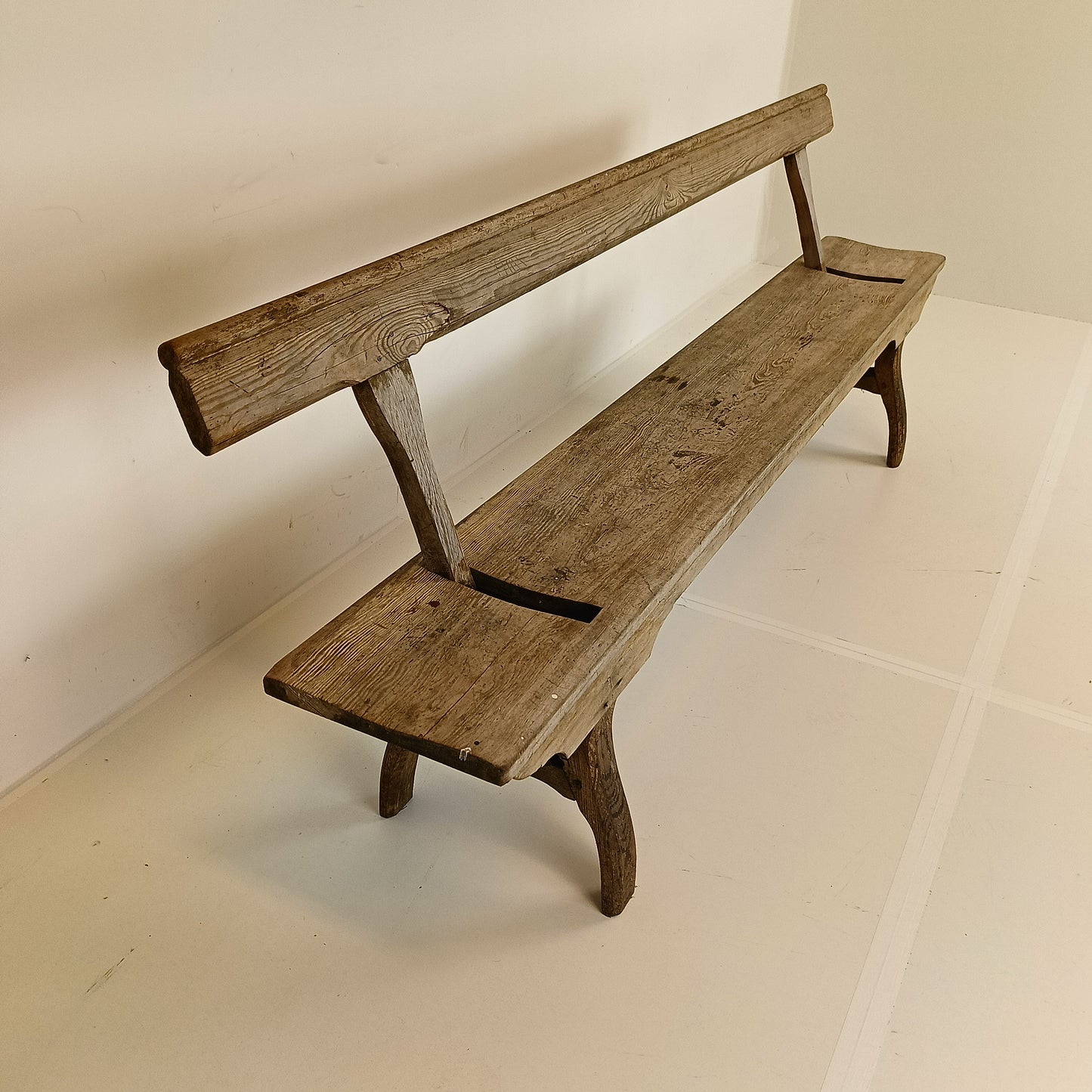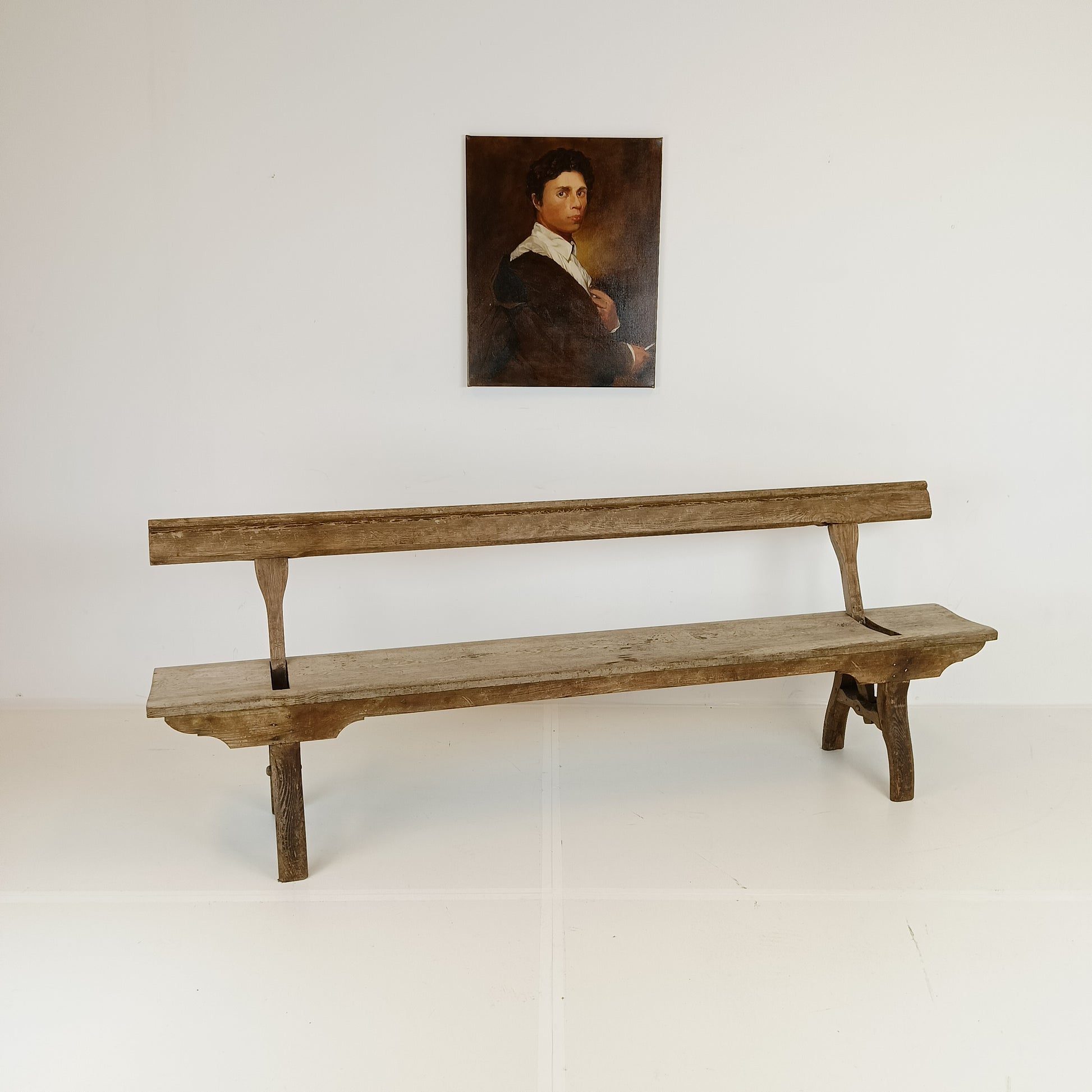 With stunning patina. The bench features an ingenious swing-back design, so it can be sat on from both sides while waiting for the train to arrive.