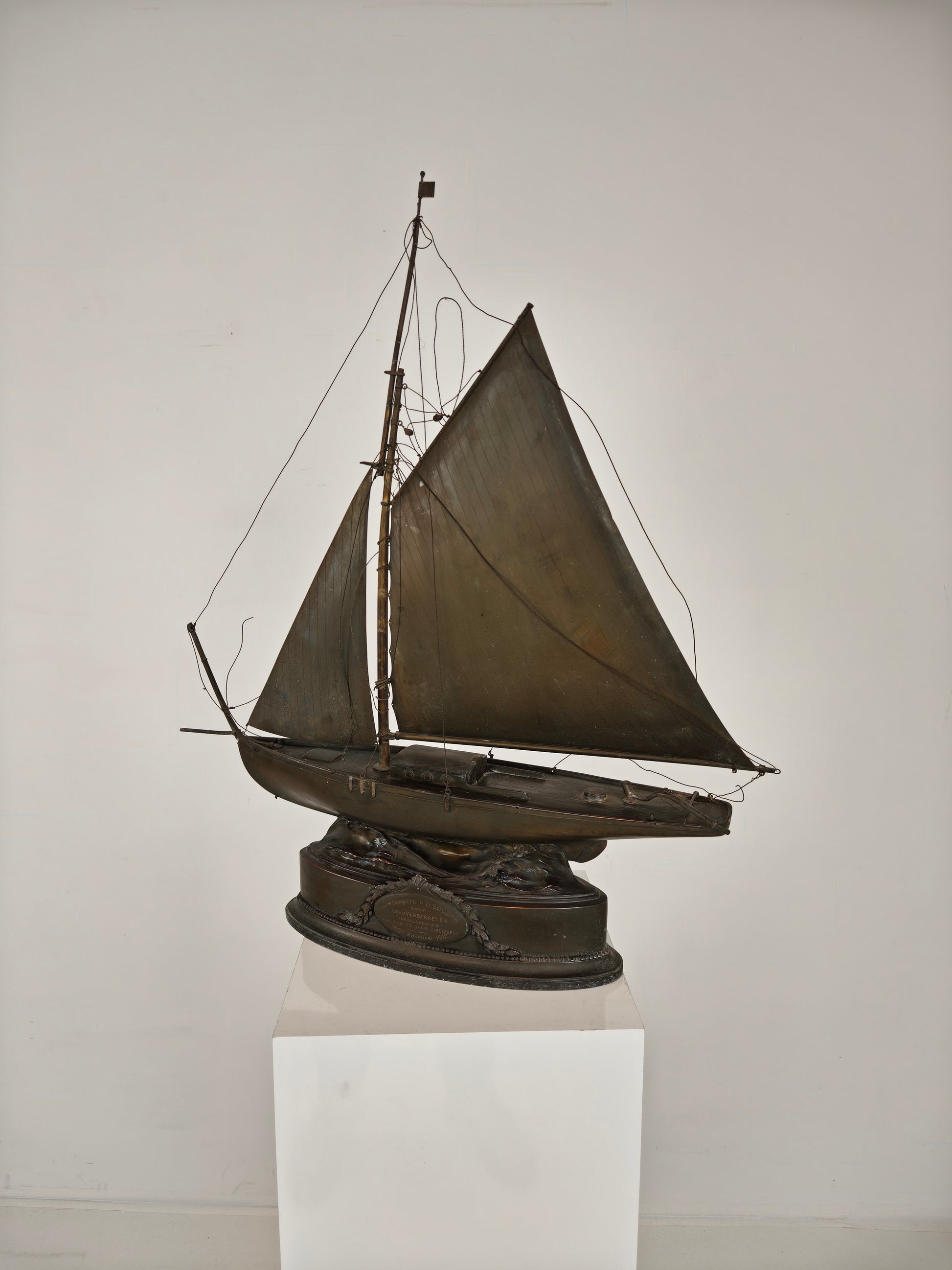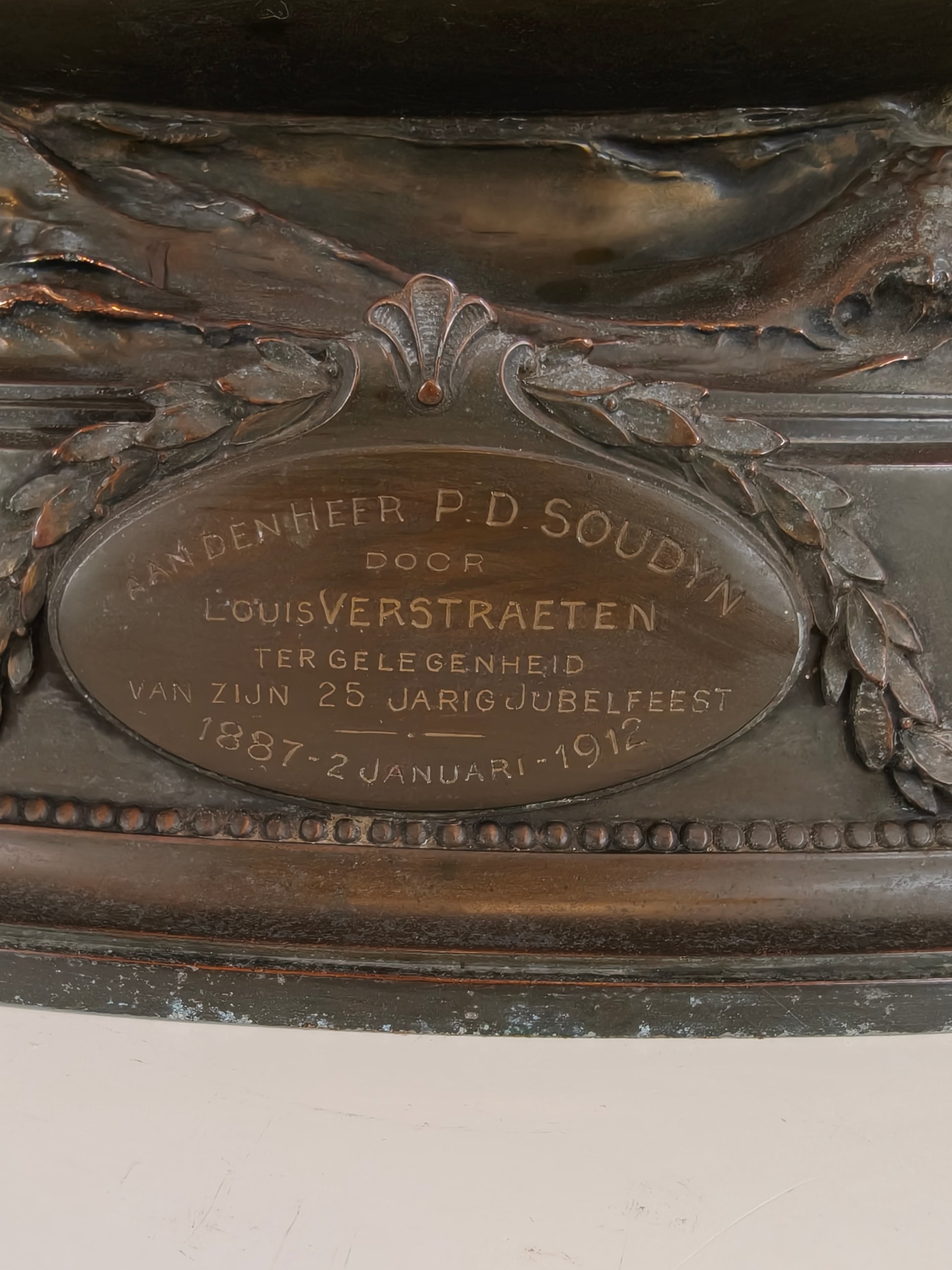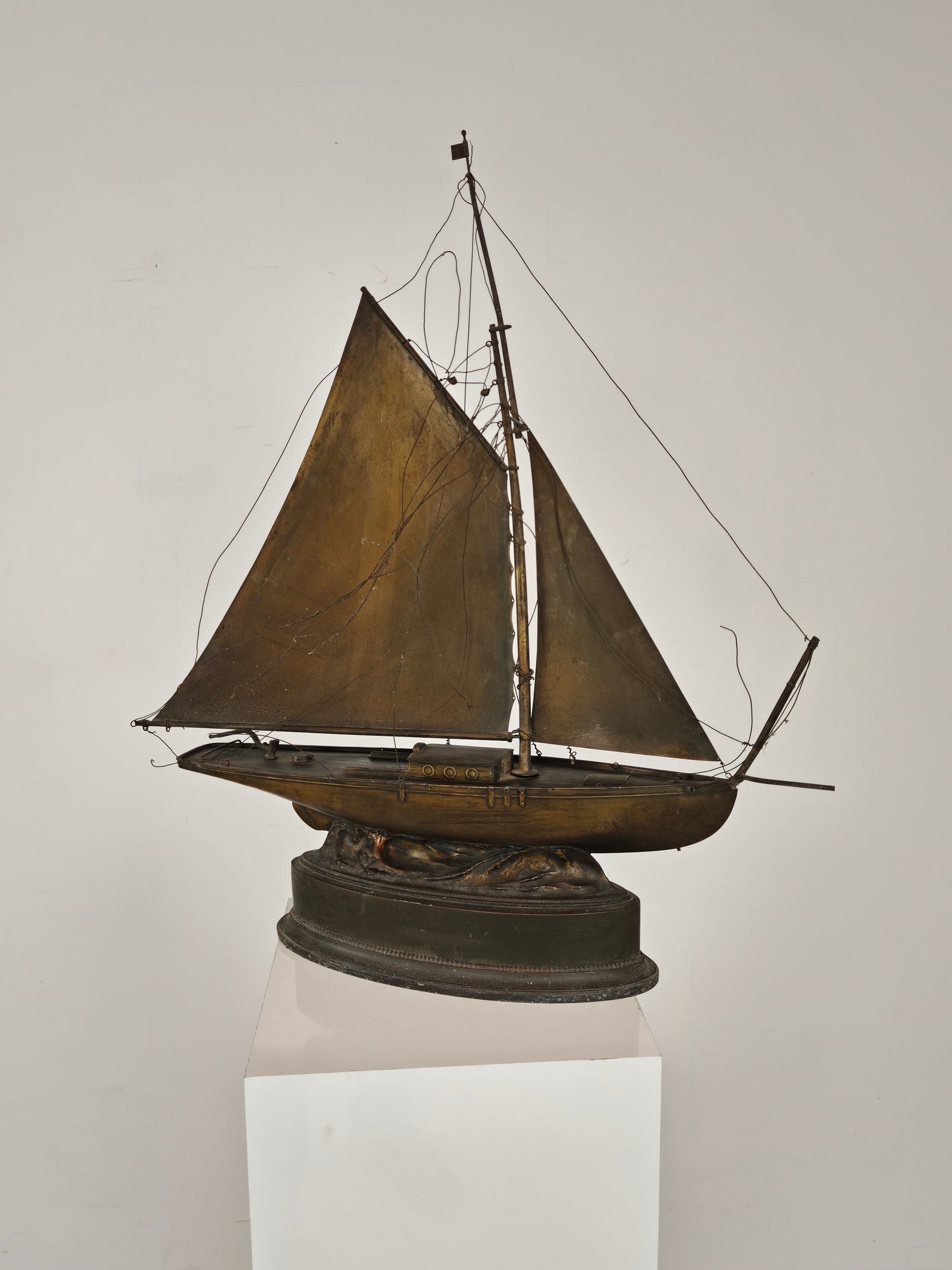 A remarkable brass sailing ship, entirely crafted from brass and signed in 1912 by Louis Verstraeten to Mr. P.D. Soudyn, commemorating his 25th anniversary (1887 – January 2, 1912). Now 113 years old, this piece remains a highly decorative object, retaining its original character and charm.