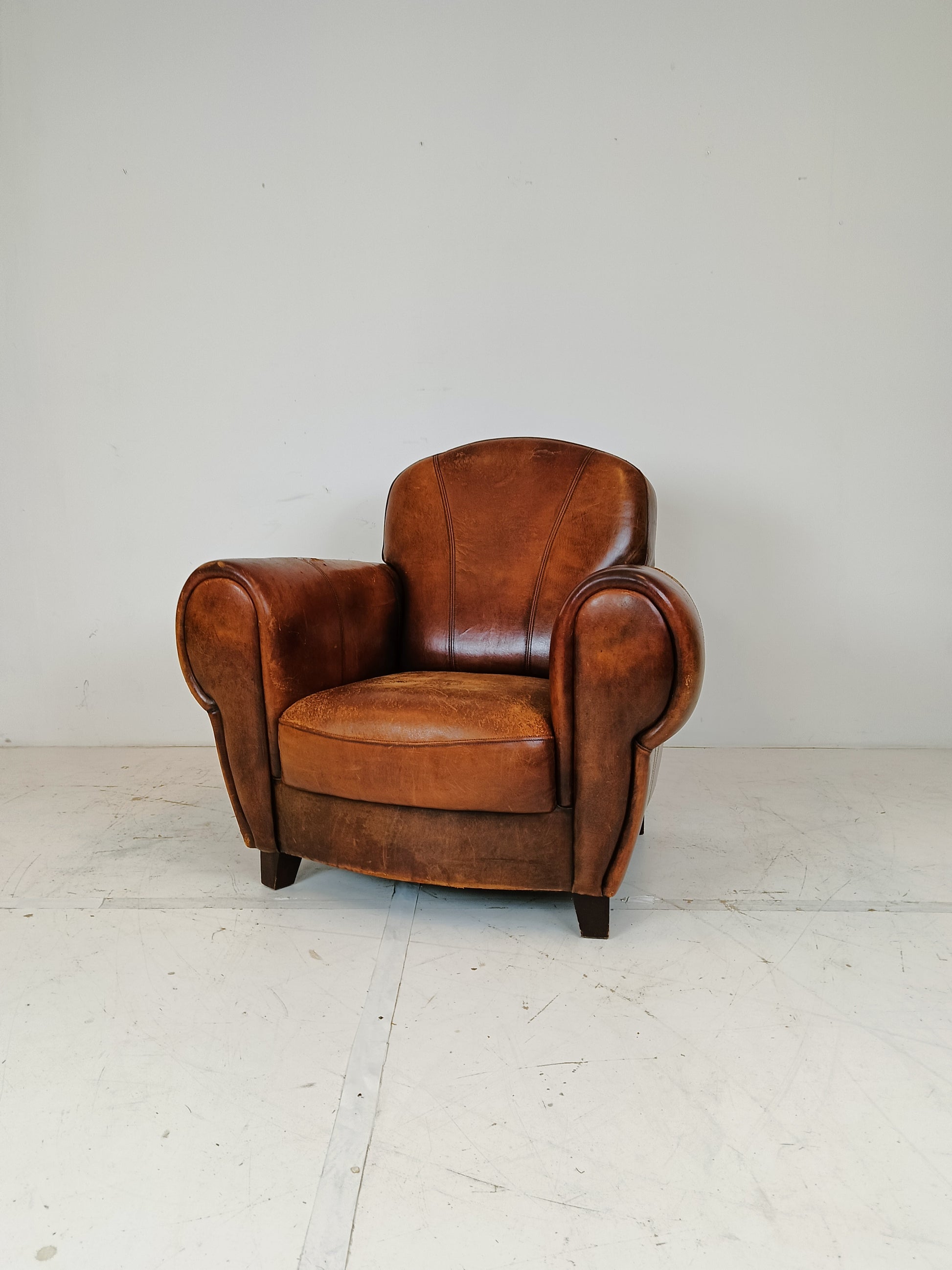 Not much words needed for this beauty. Classic sheep leather club chair. Signs of patina, shown on pictures. Original maker Joris, Dutch.