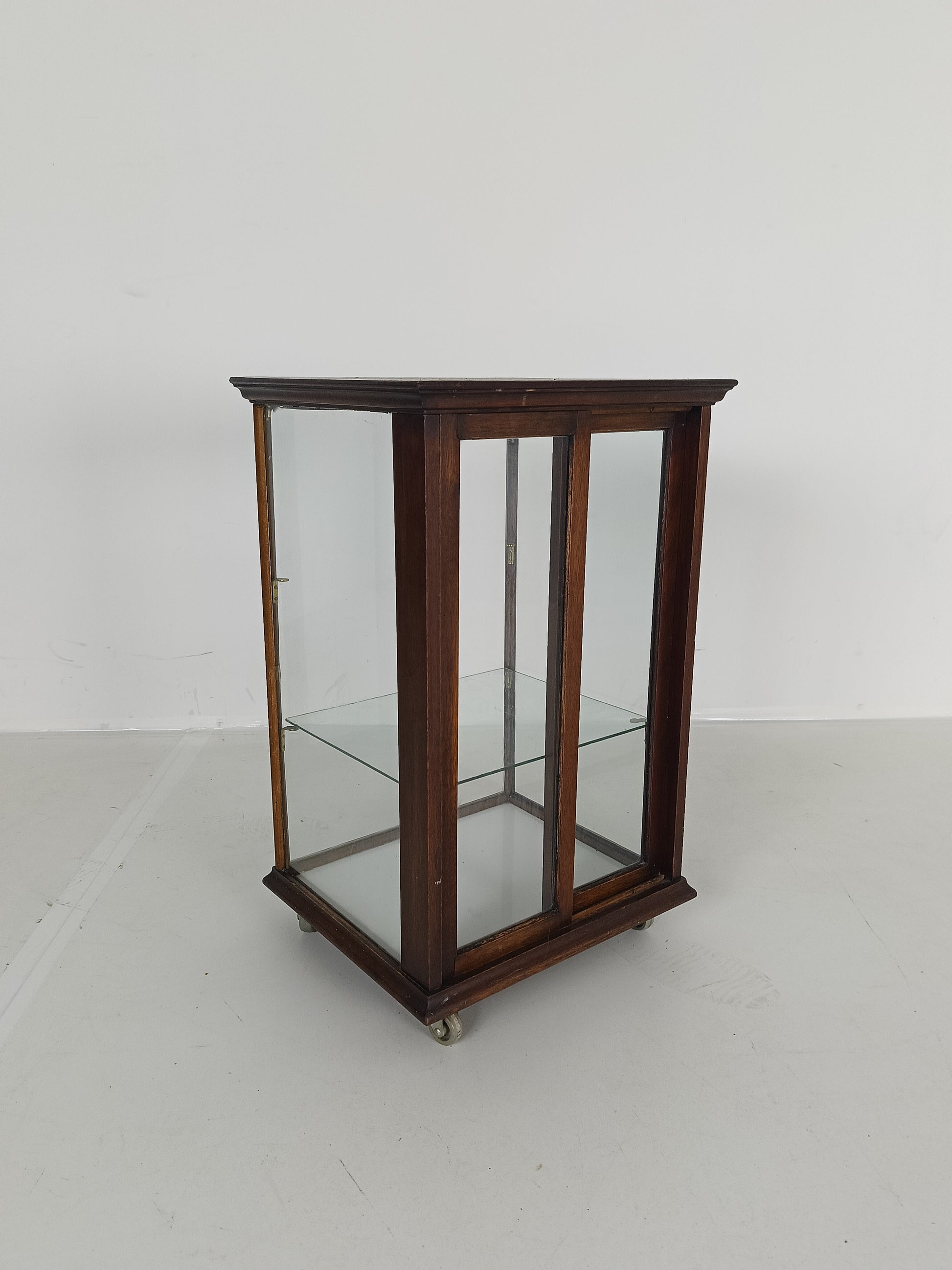 A compact and elegant piece, ideal for showcasing collectibles or decorative items. Often crafted from wood with glass panels, it features adjustable shelves and intricate details, blending functionality with aesthetic appeal. Perfect for living rooms or dining areas.