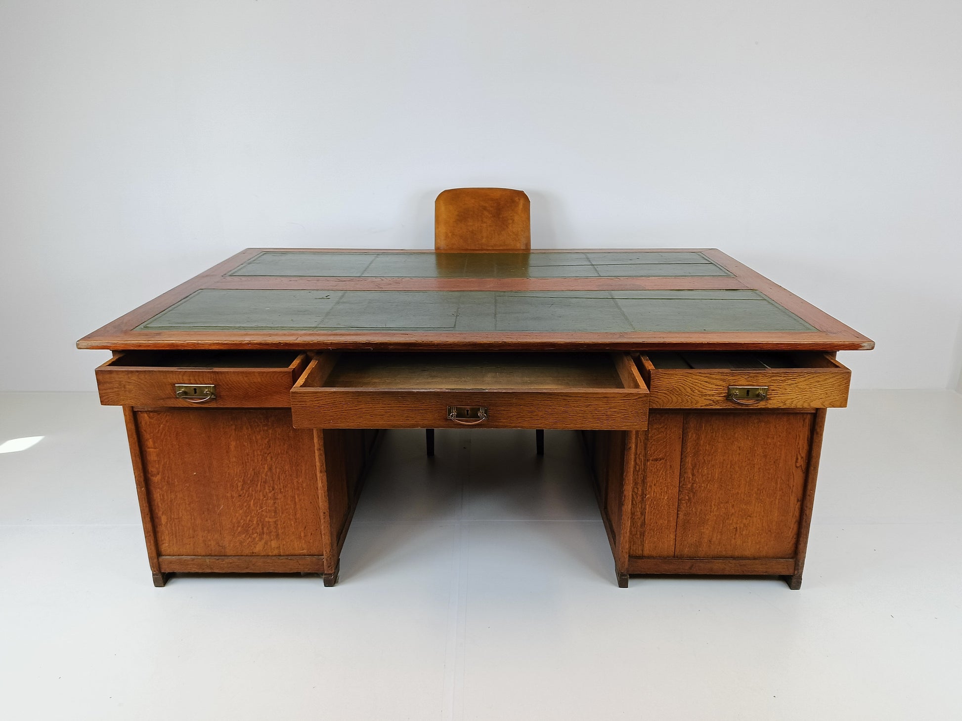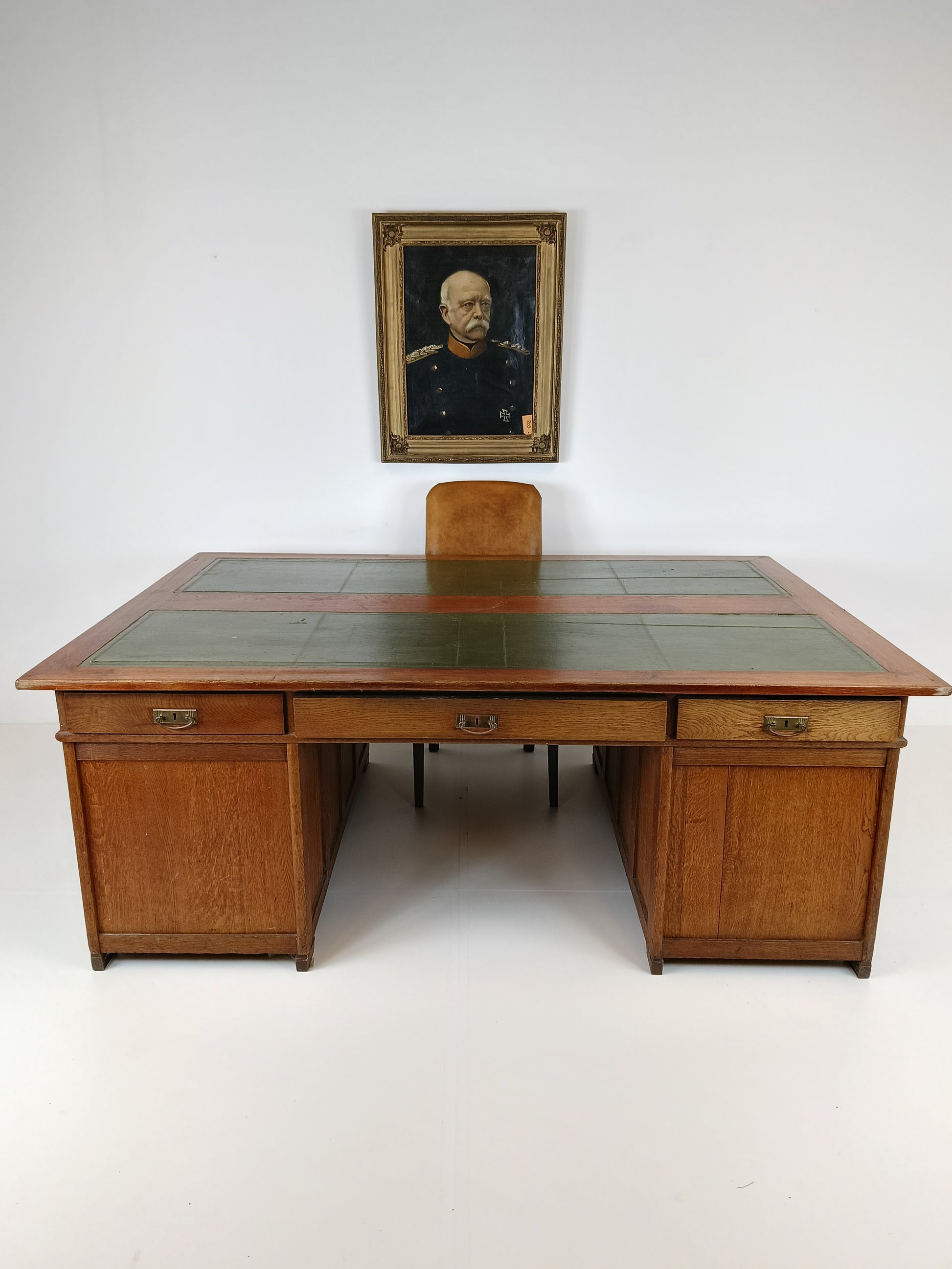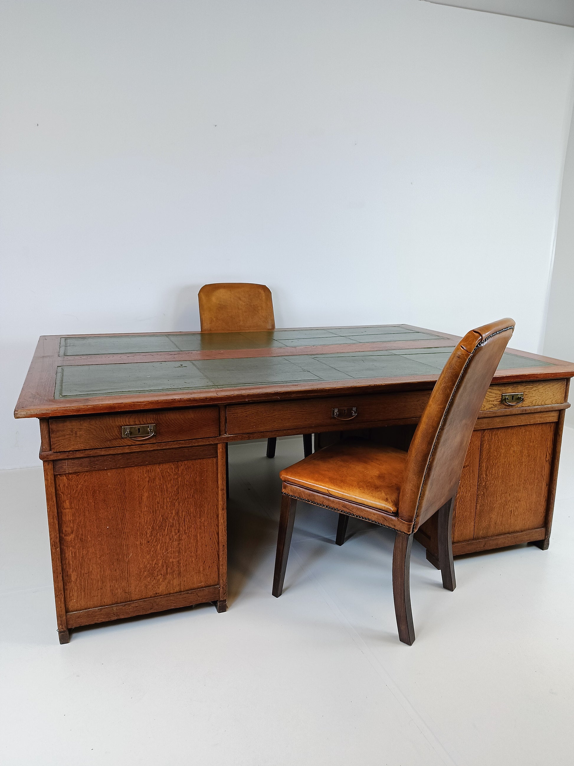 Antique desks/ Partner office or double desk ±1900, with weathered leather