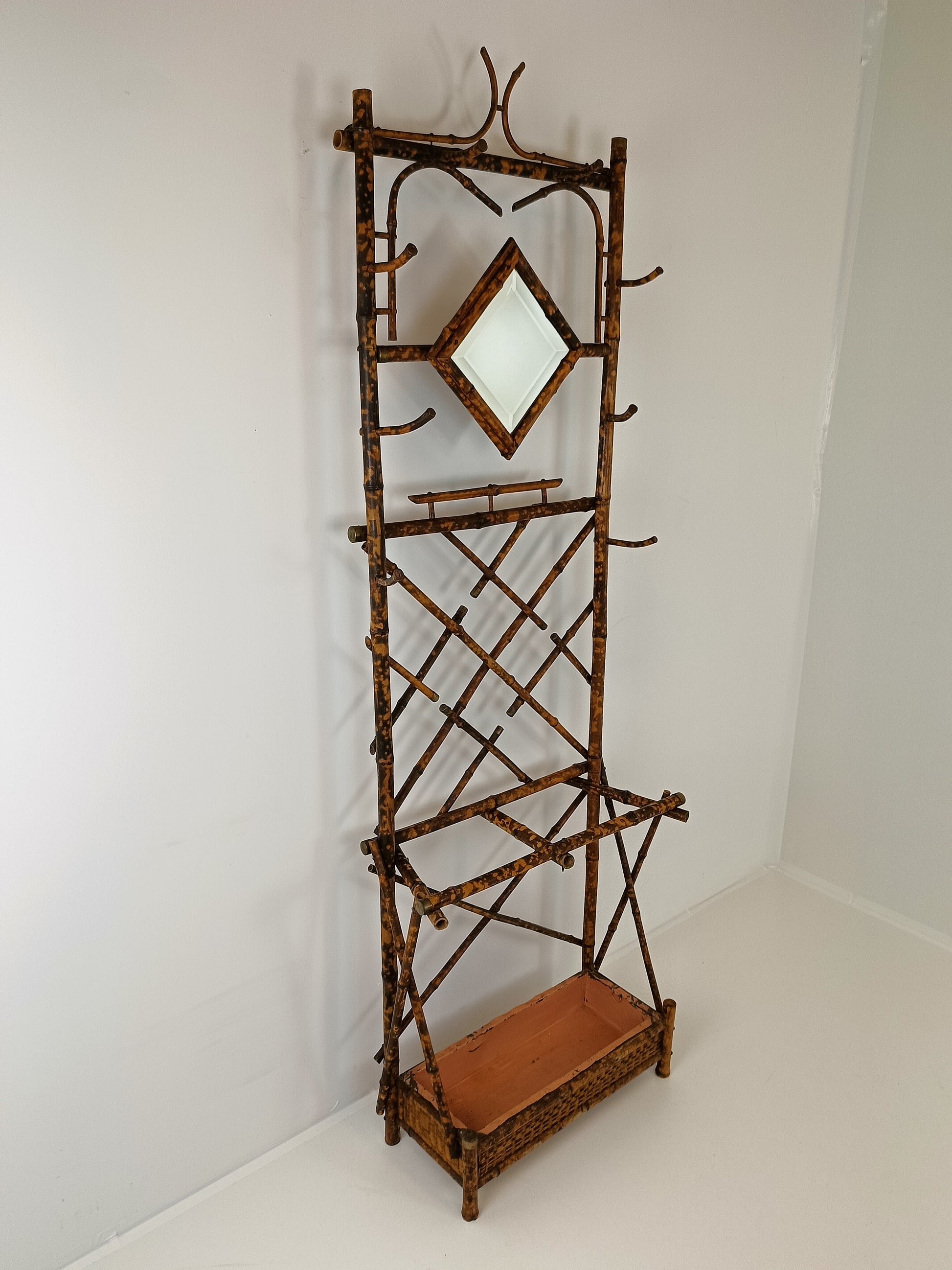 Standing Bamboo Coat Rack With Mirror Around 1920