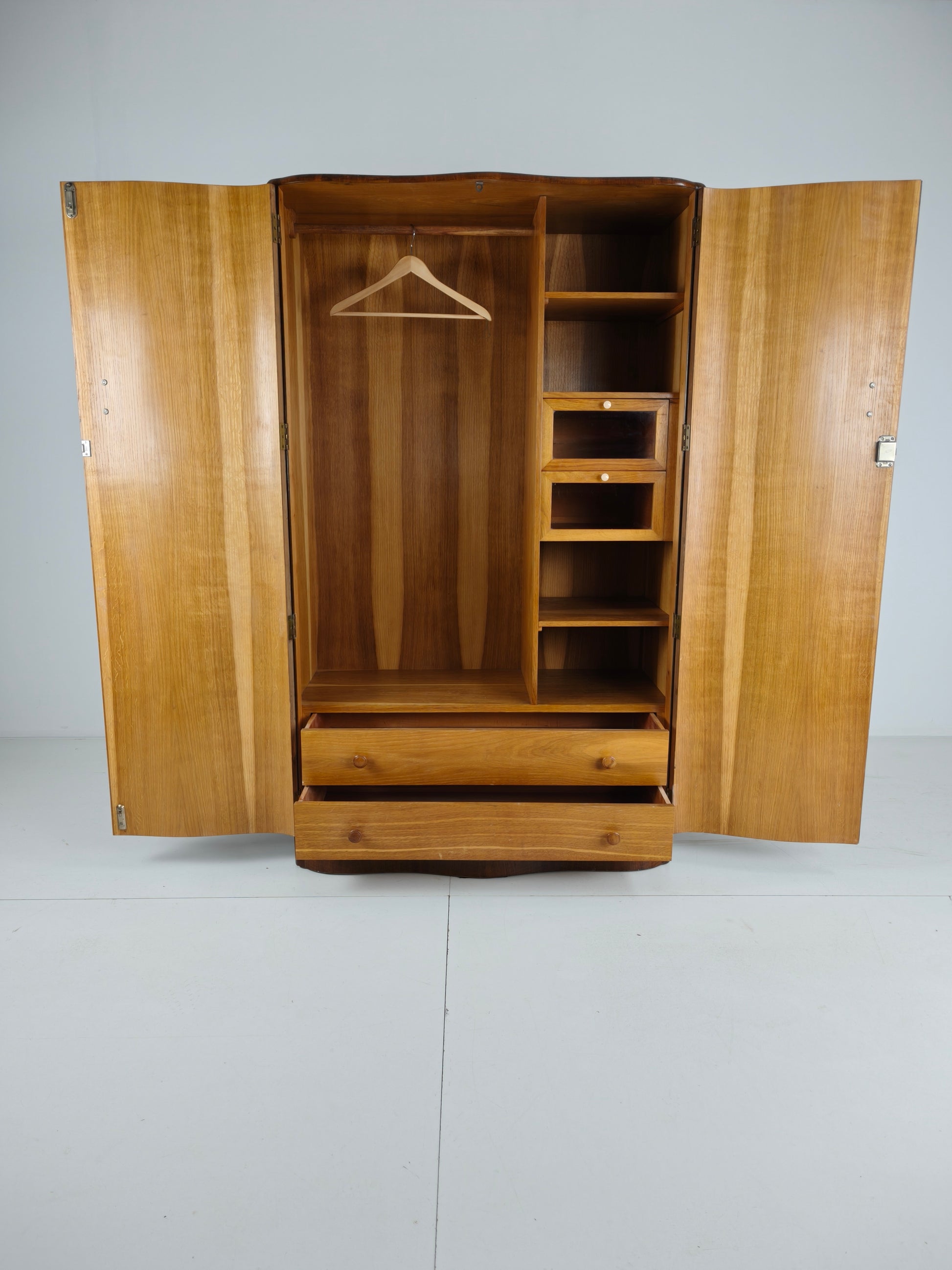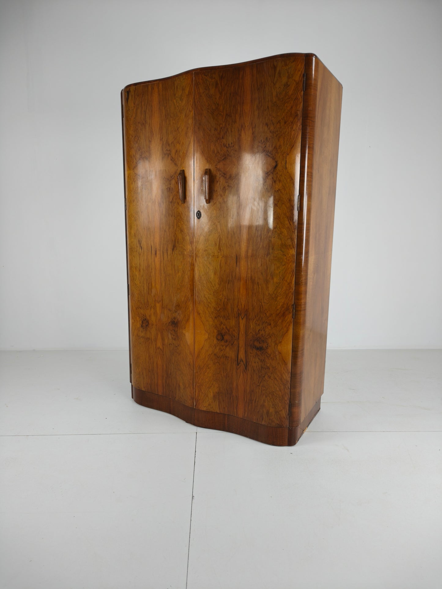 Stunning English Art Deco Burr Walnut Wardrobe – 1930s