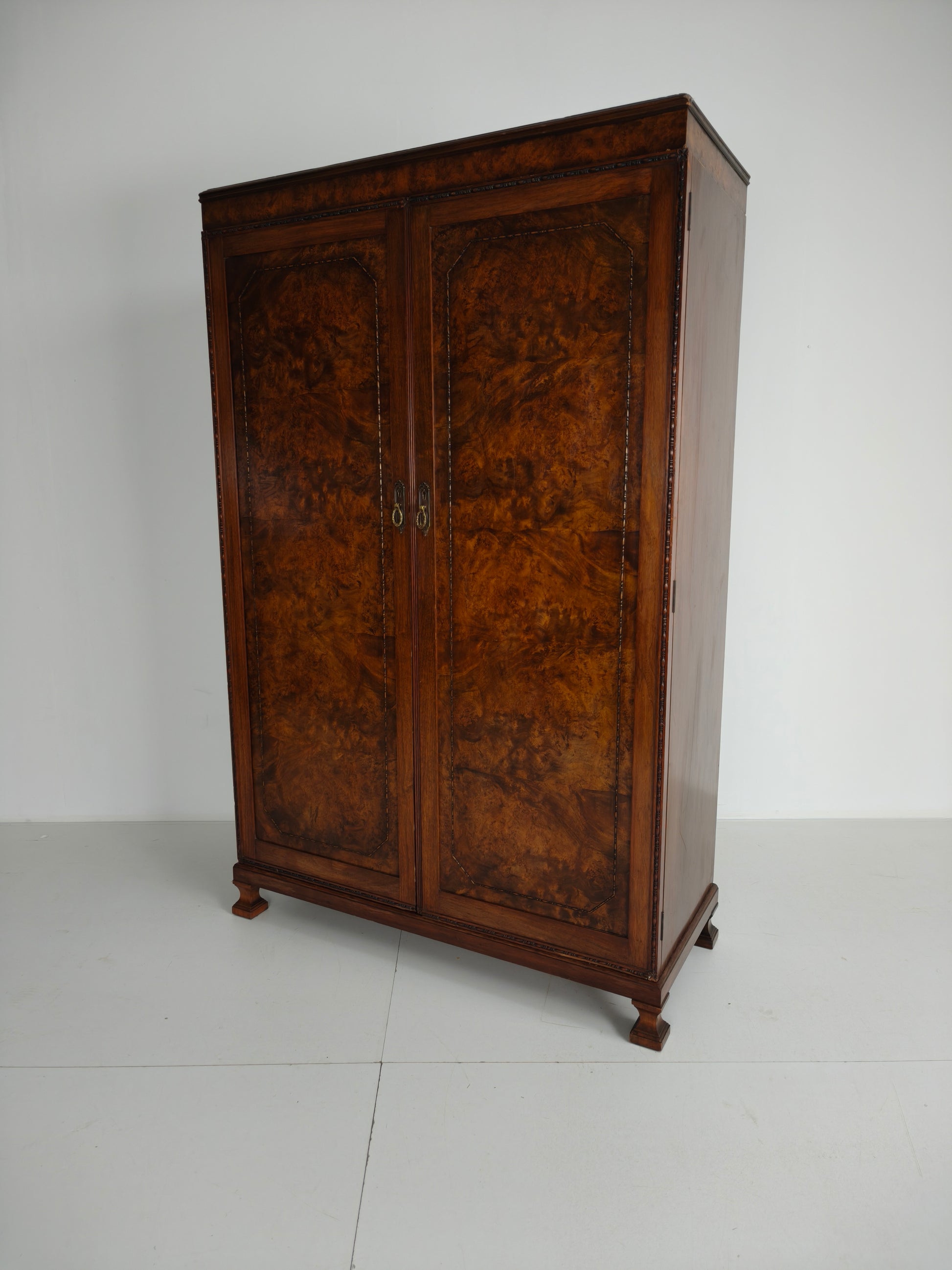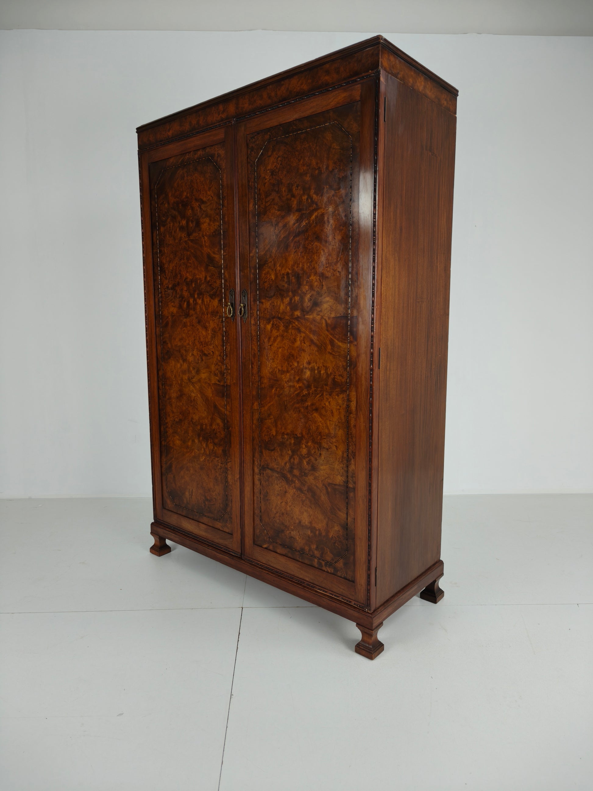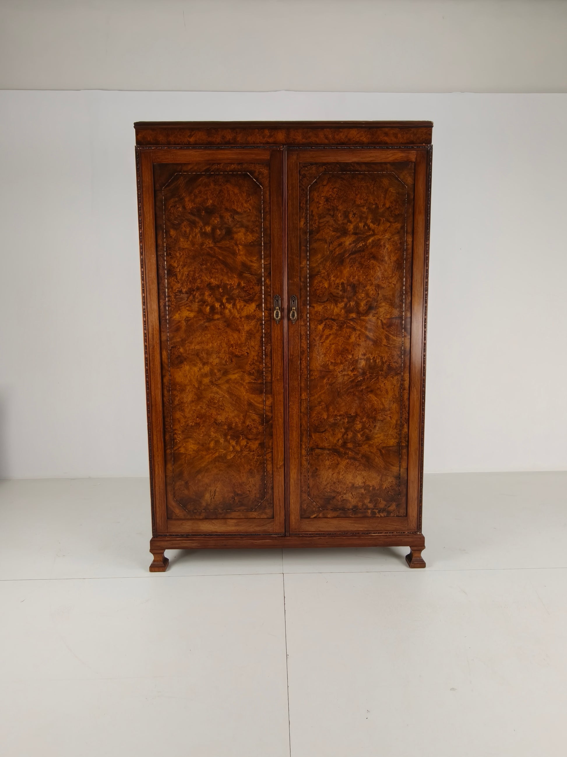 Stunning English Art Deco Burr Walnut Wardrobe by Waring & Gillow – c.1900–1932
