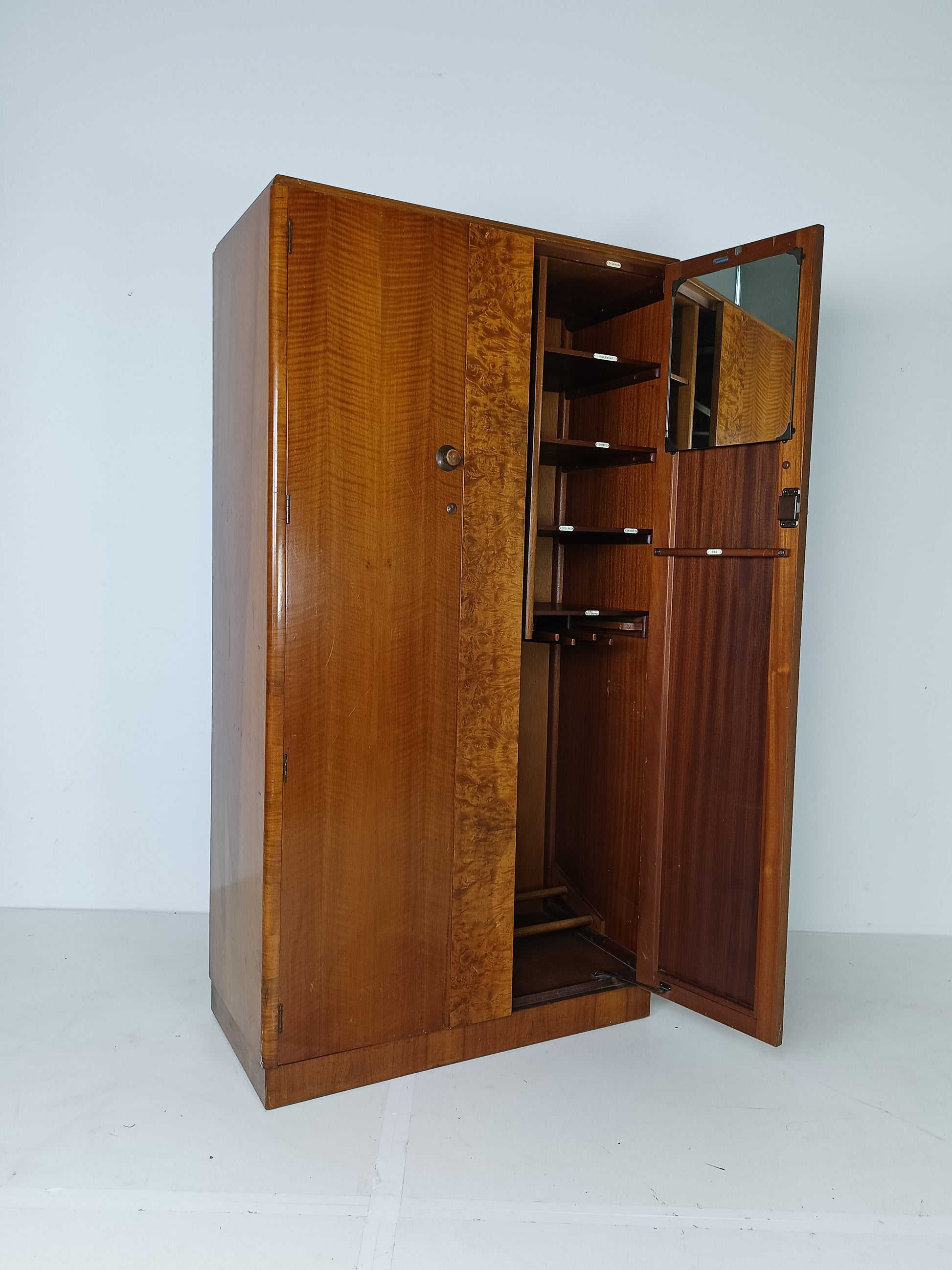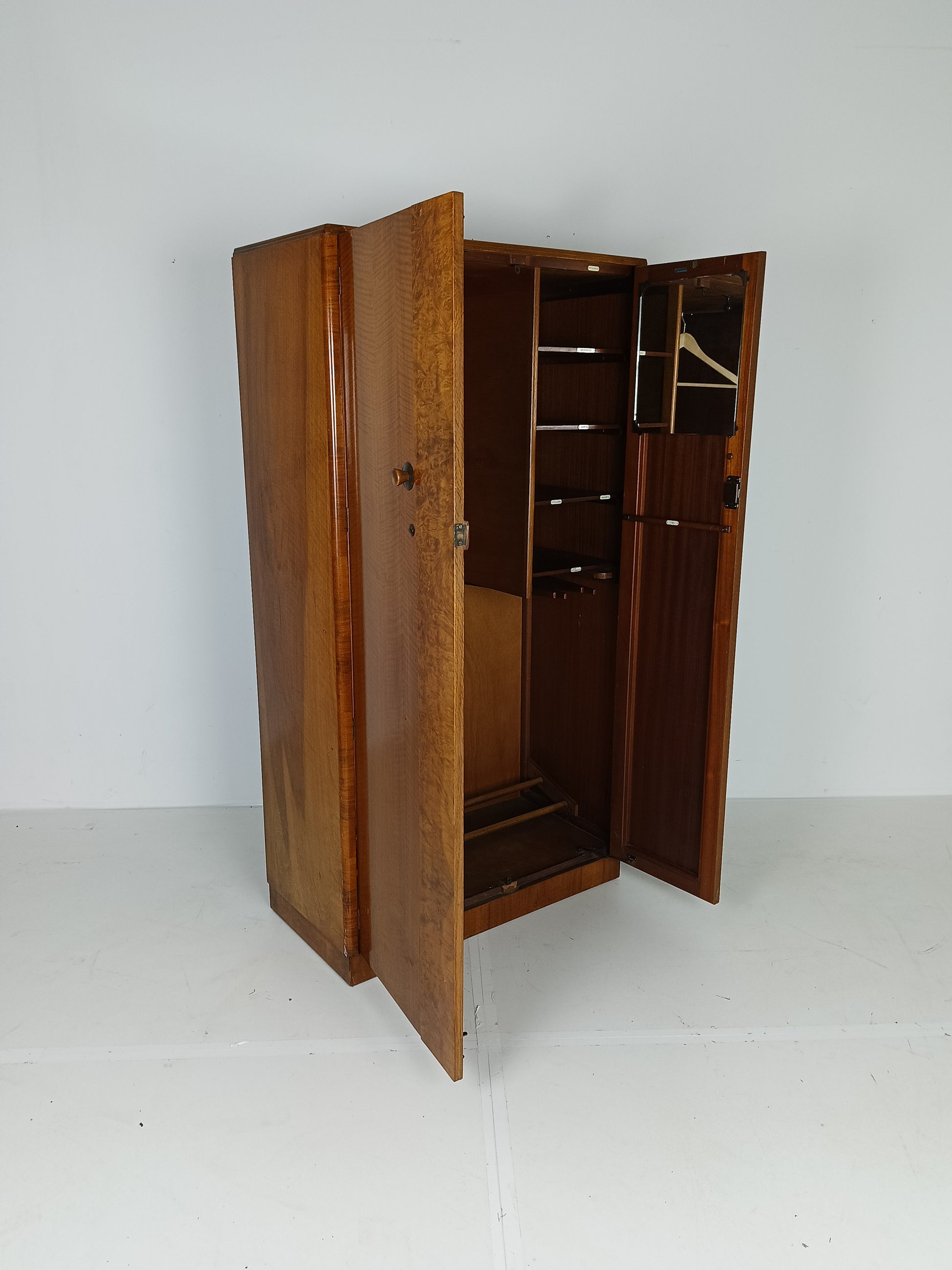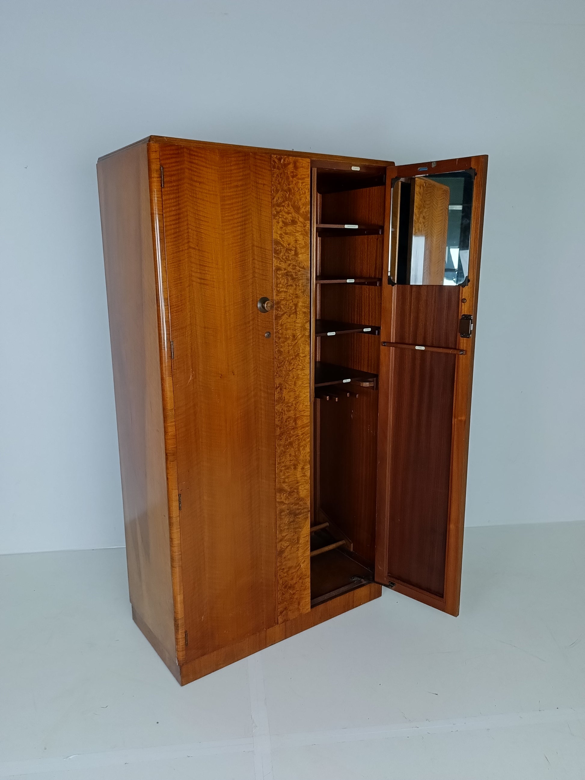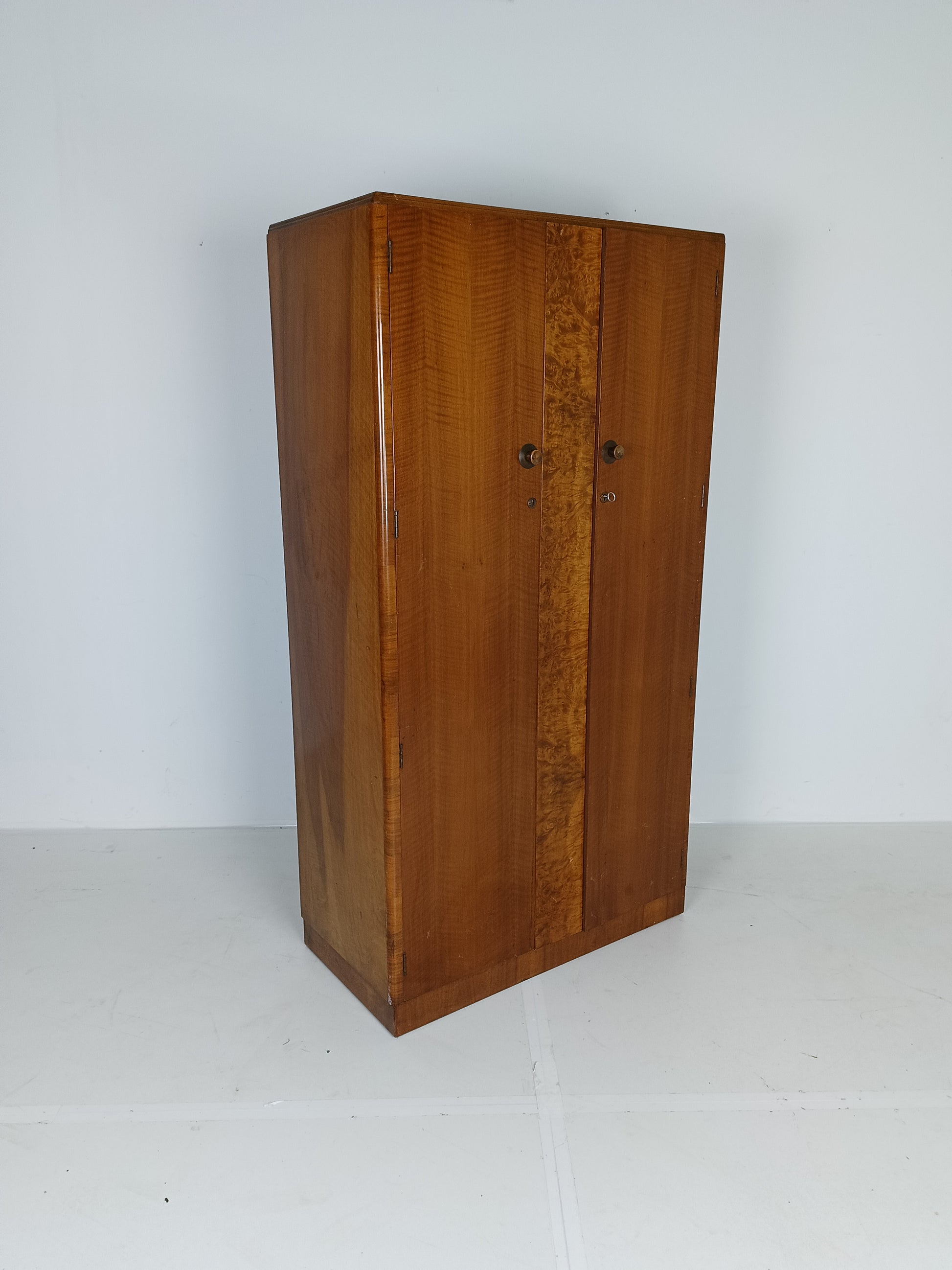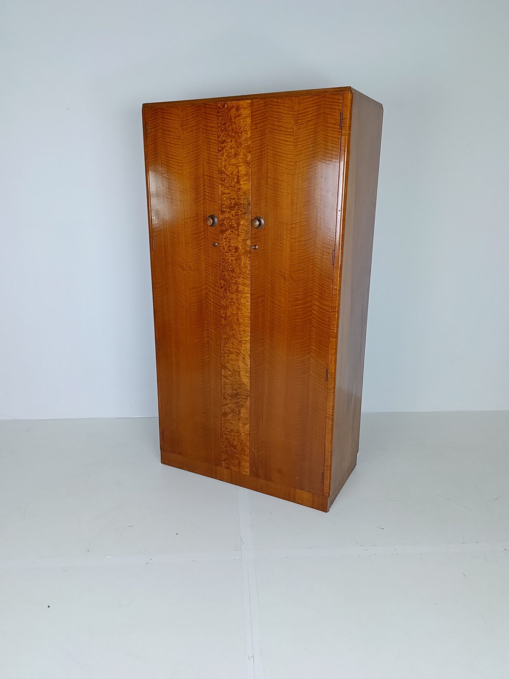 Stunning English Art Deco Burrnut Wardrobe