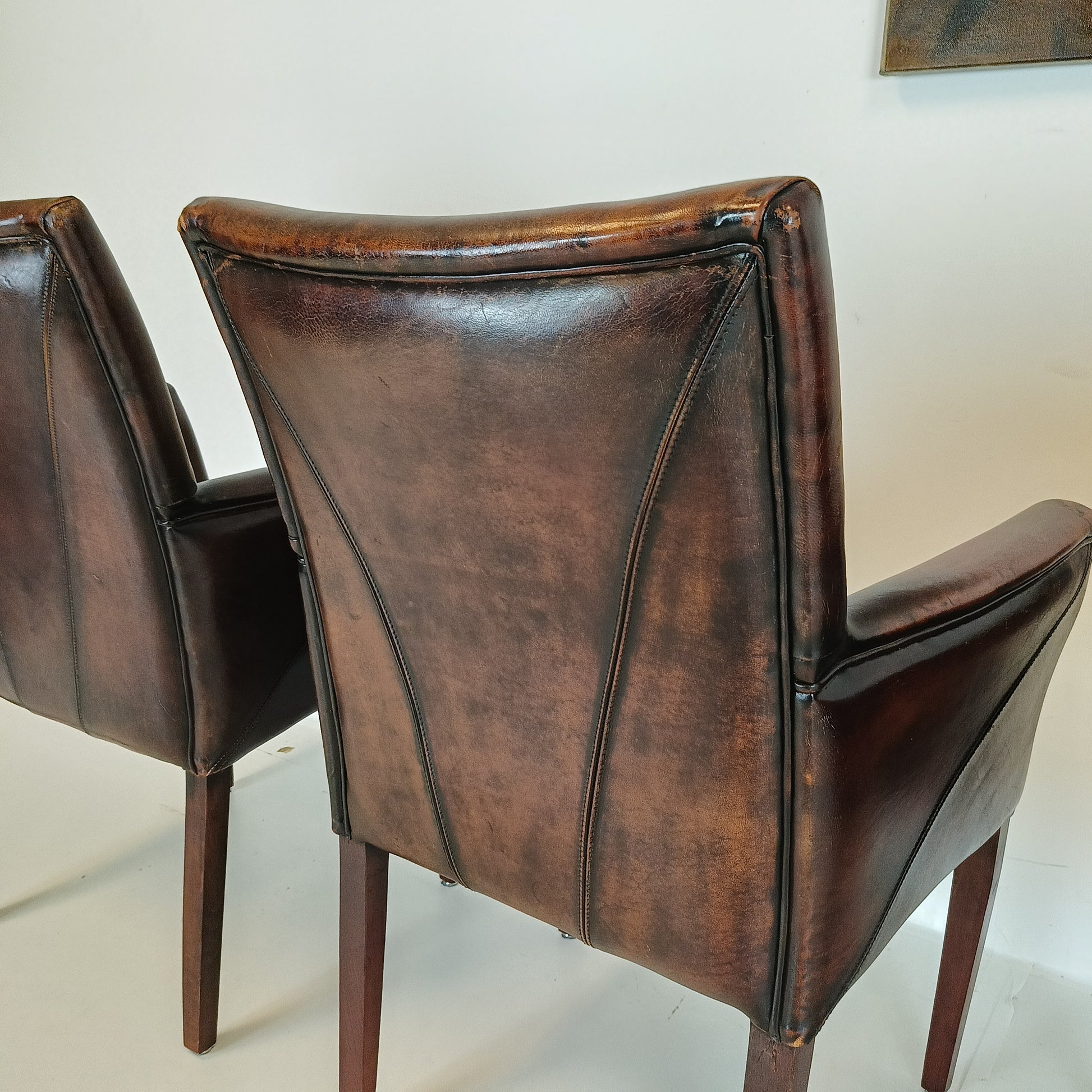 These sheep leather chairs combine luxurious comfort with rustic elegance. The supple sheep leather upholstery is soft to the touch, providing a cozy and inviting seating experience. Over time, the leather will develop a natural patina, enhancing its unique character.
