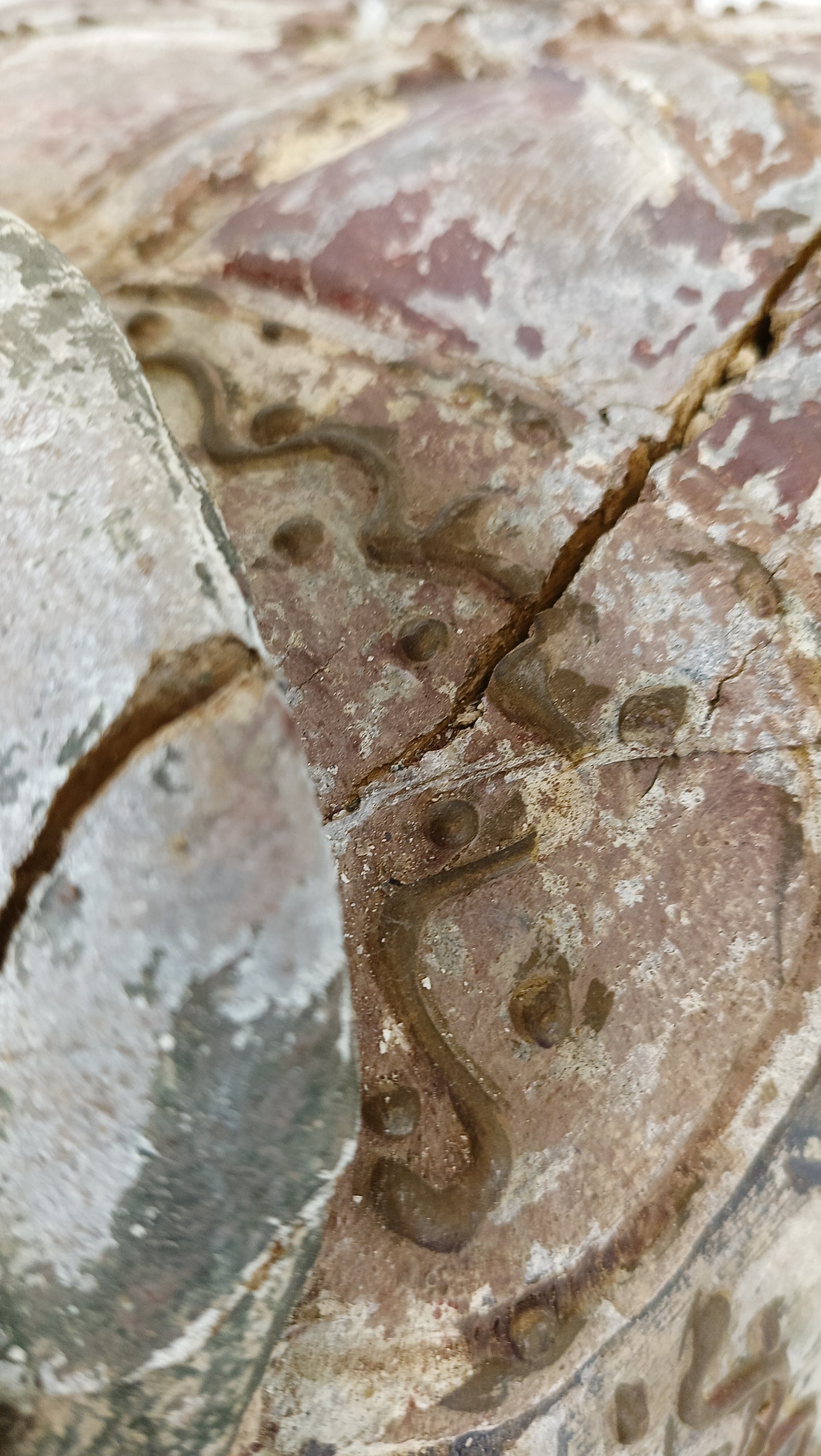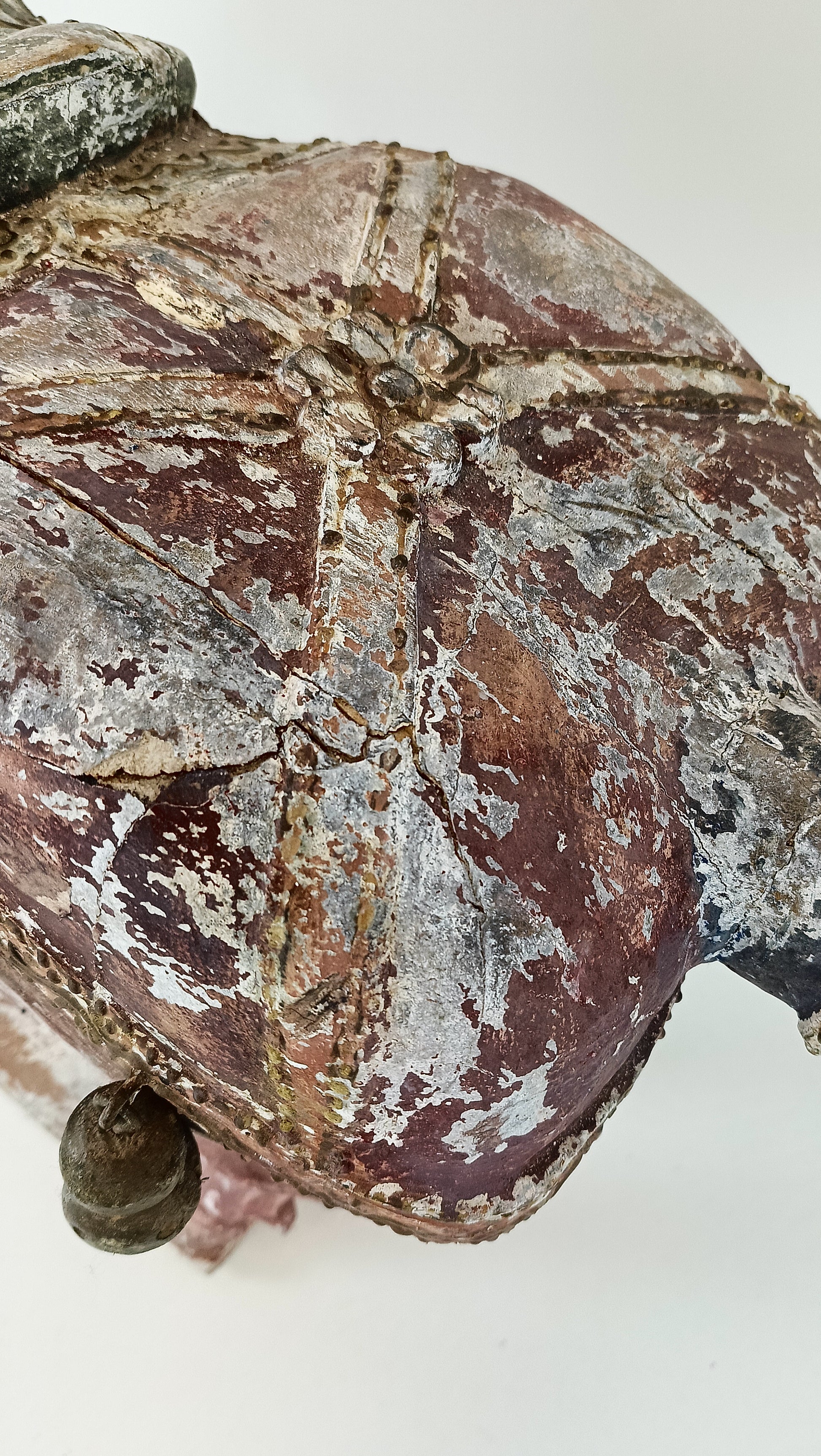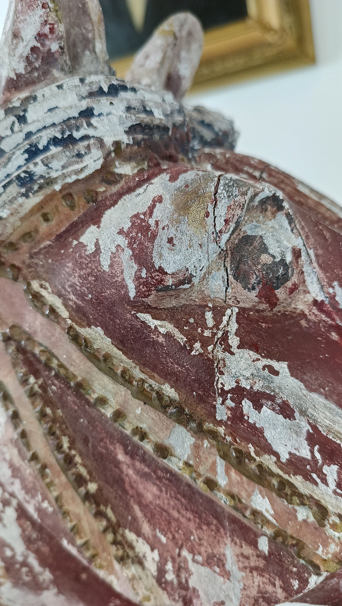 Polychrome horse made out of carved wood in Chinese style from the middle of the 20th century. This sculpture has some wear such as scratches and other signs of aging.