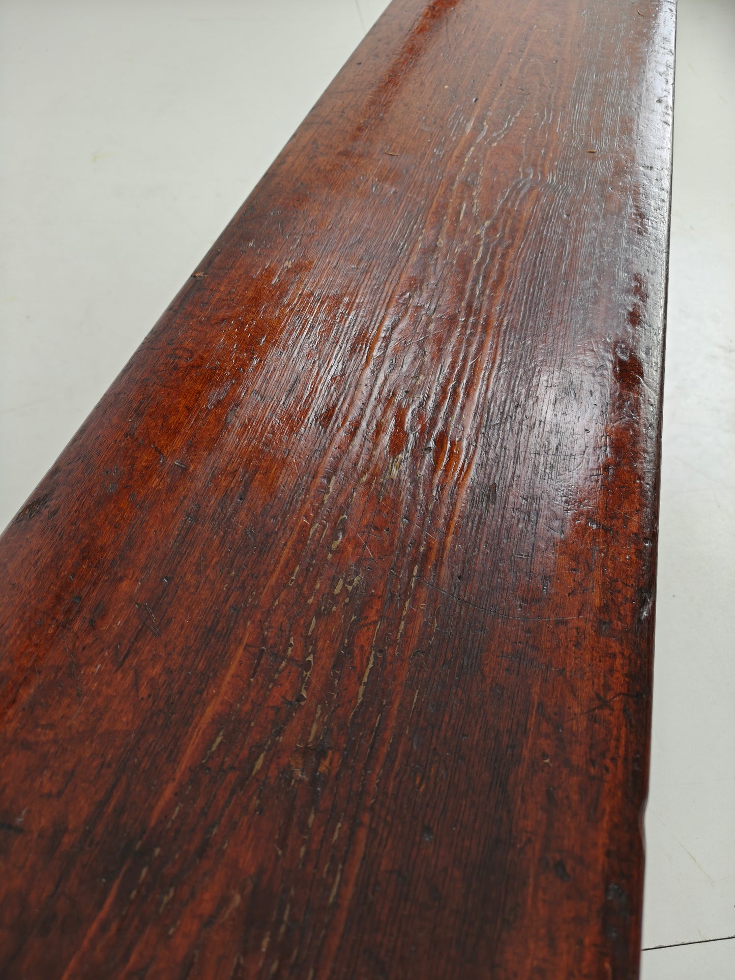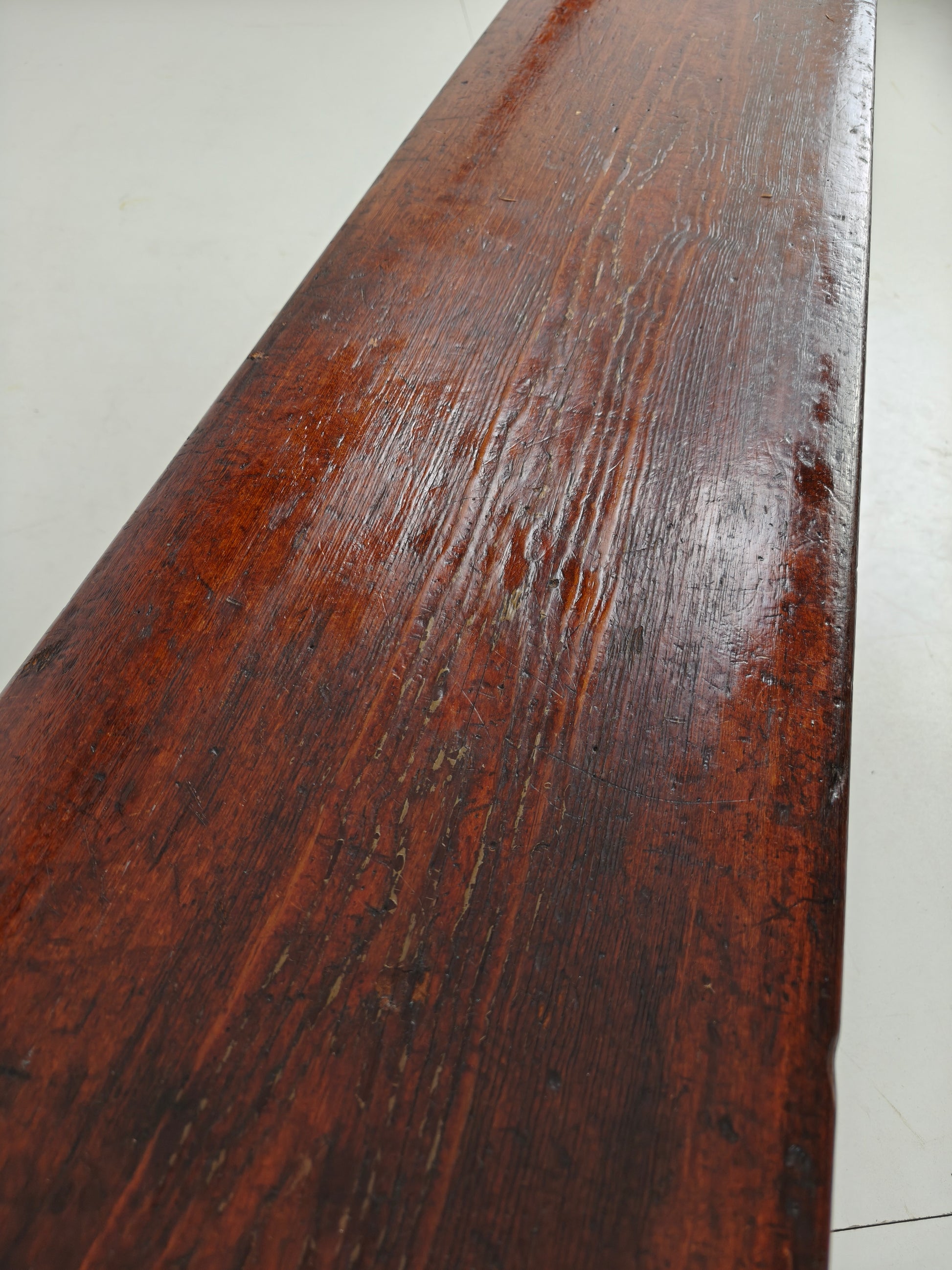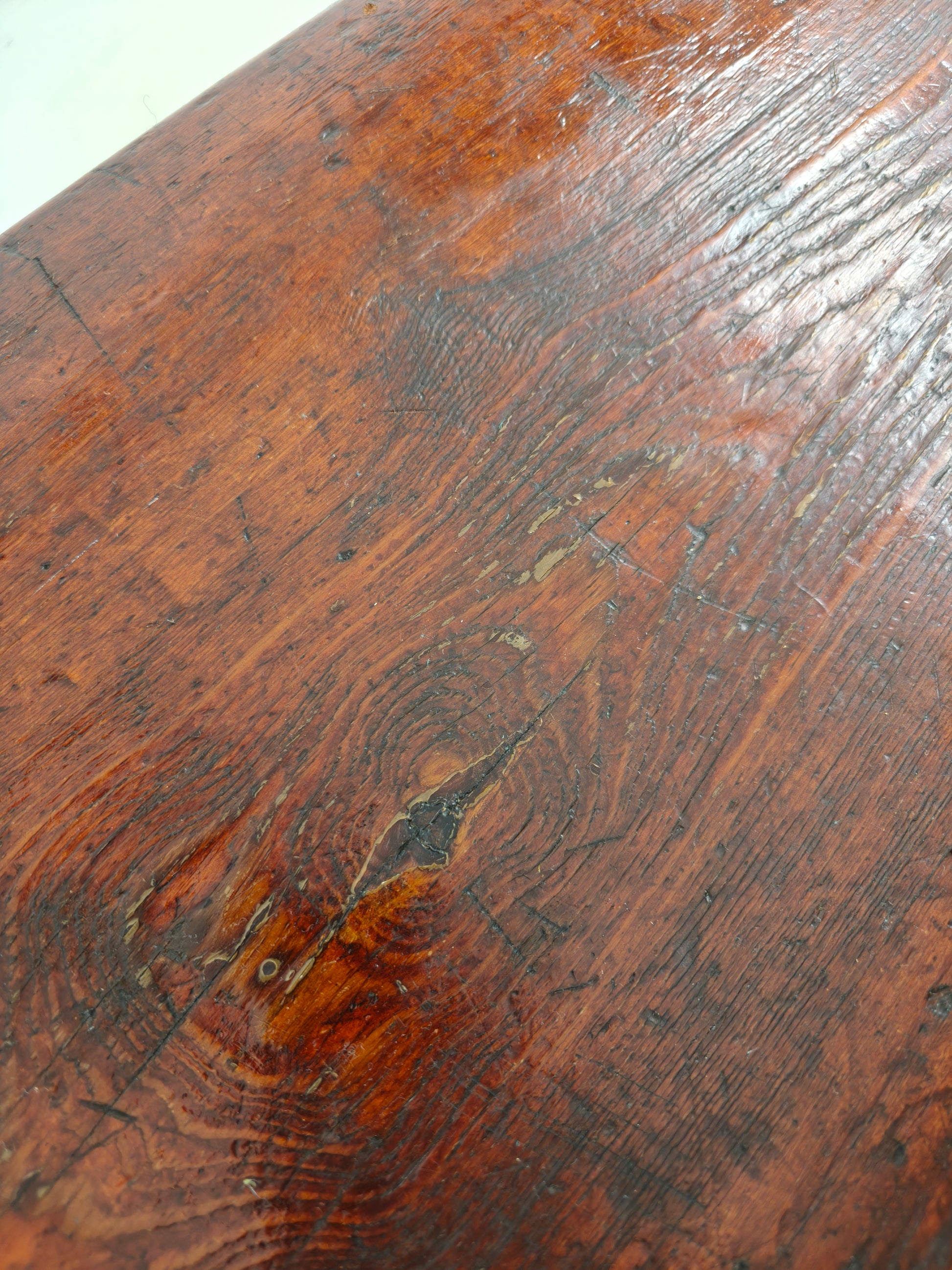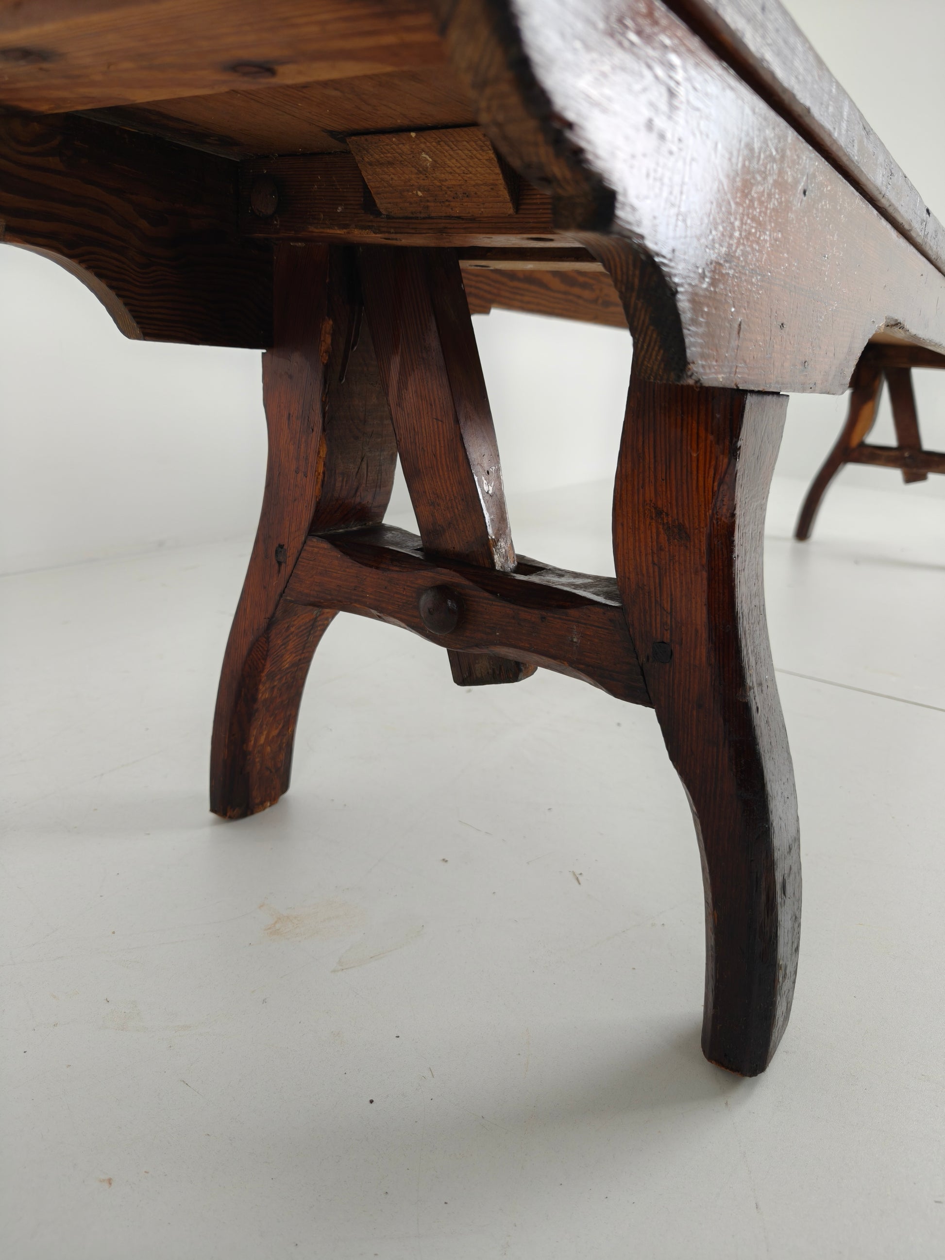 Made by Halstead’s Makers of Todmorden, this piece boasts a stunning aged patina and exceptional craftsmanship. Underside joinery is visible—a rare and notable detail—adding to its authenticity and character.