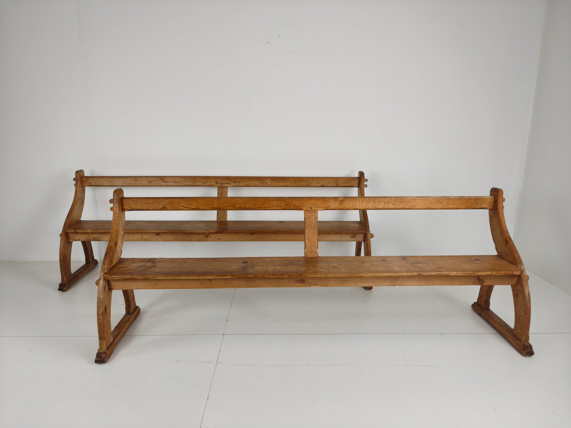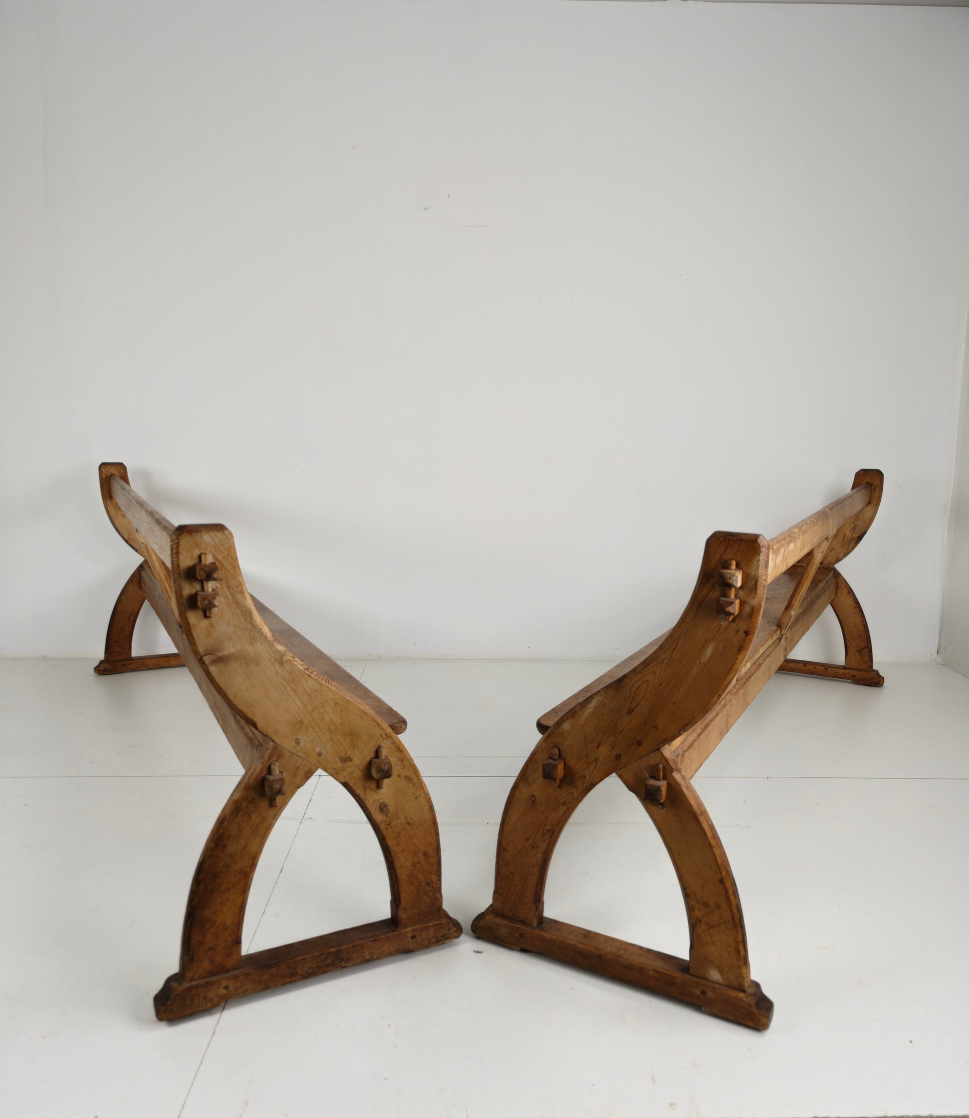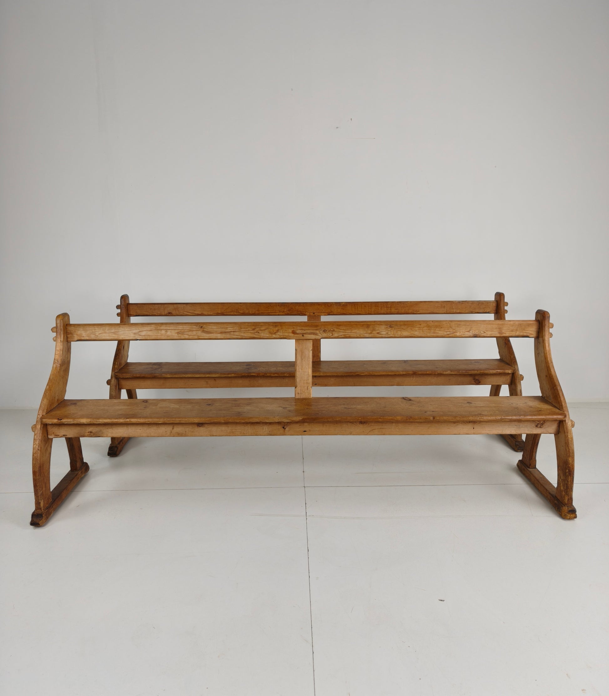 The benches are in very good condition with only minor signs of age and use. Structurally sound and full of character, they are ideal for use in a hallway, dining table setting, or as decorative seating.