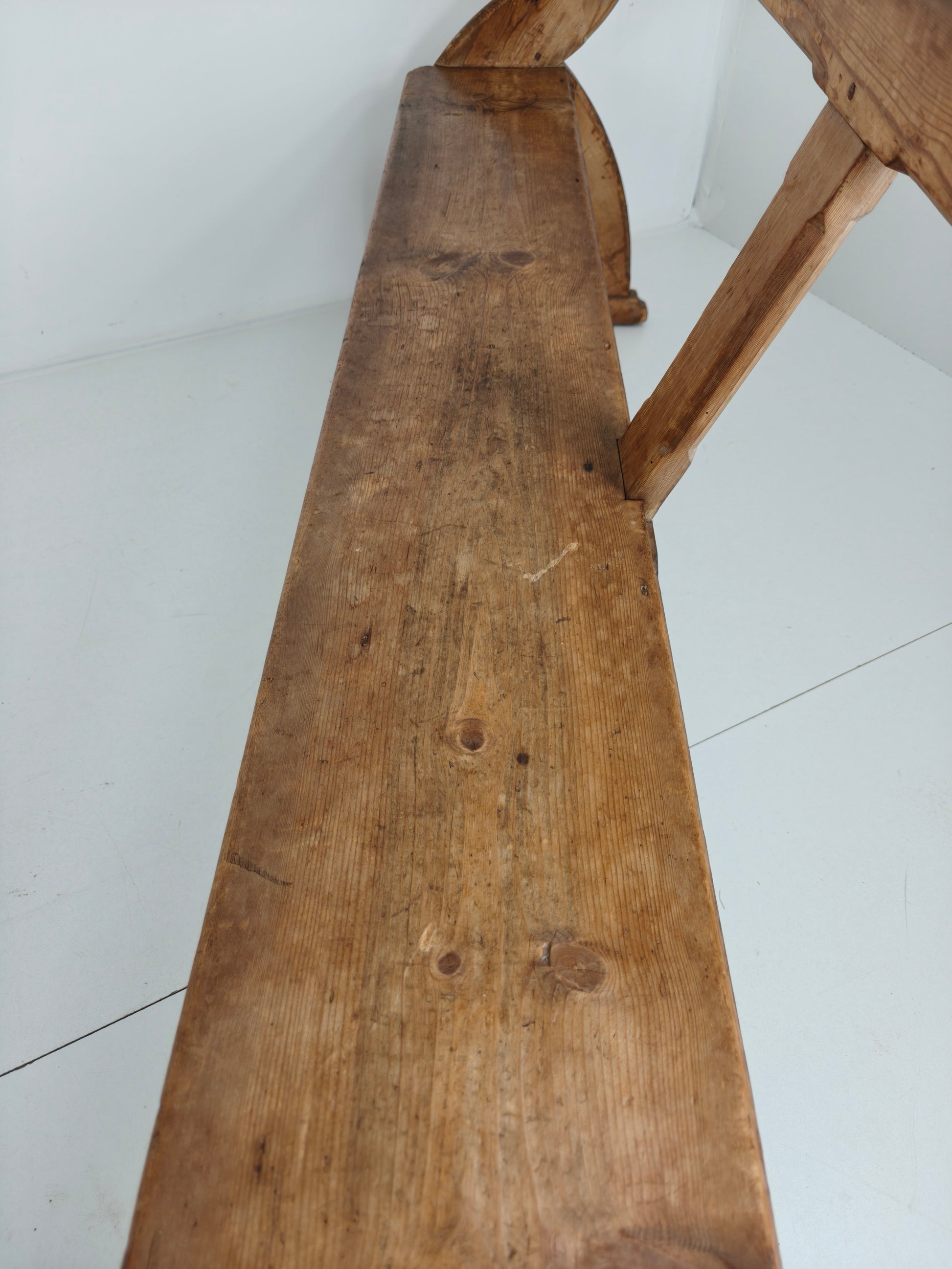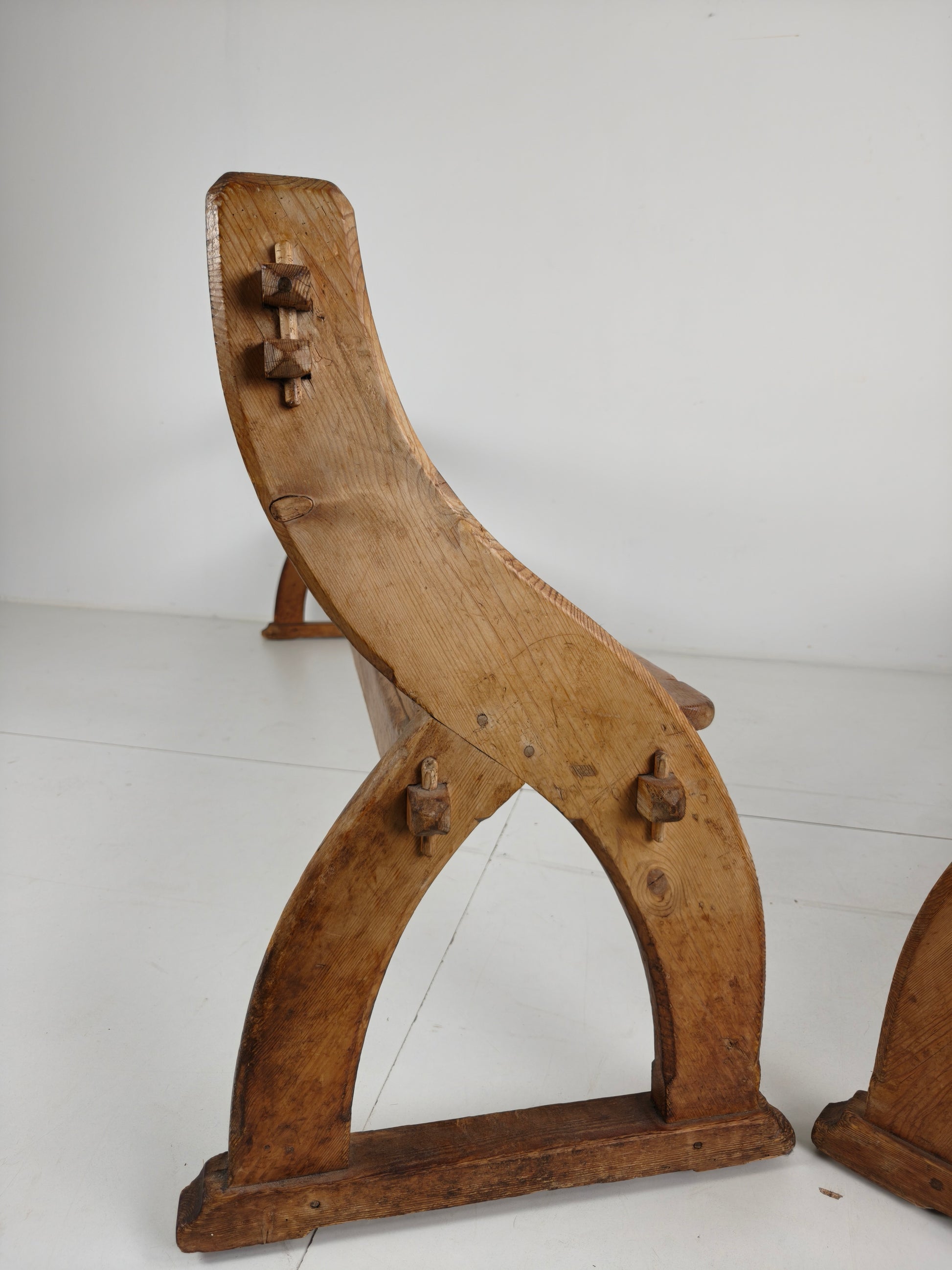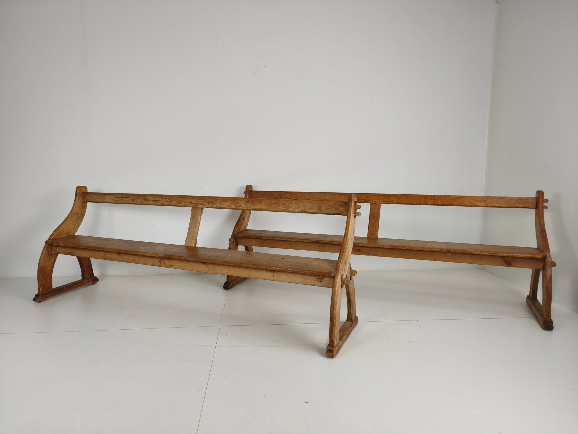 The benches are in very good condition with only minor signs of age and use. Structurally sound and full of character, they are ideal for use in a hallway, dining table setting, or as decorative seating.