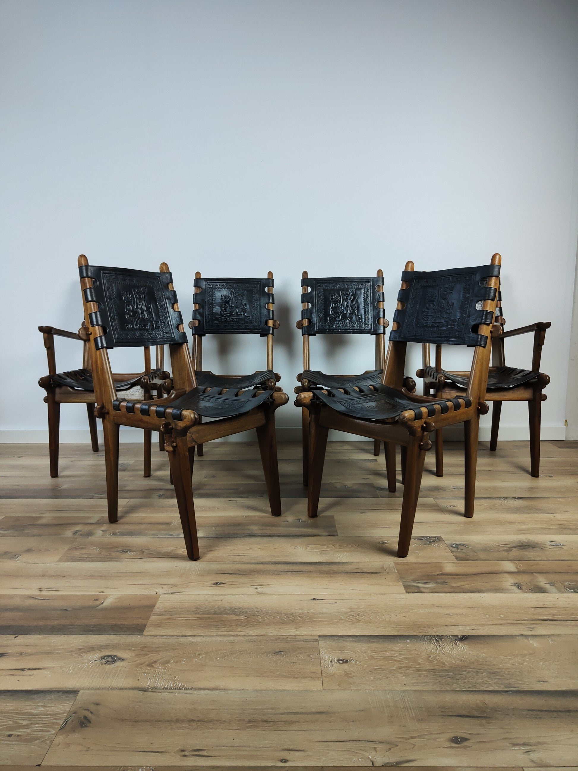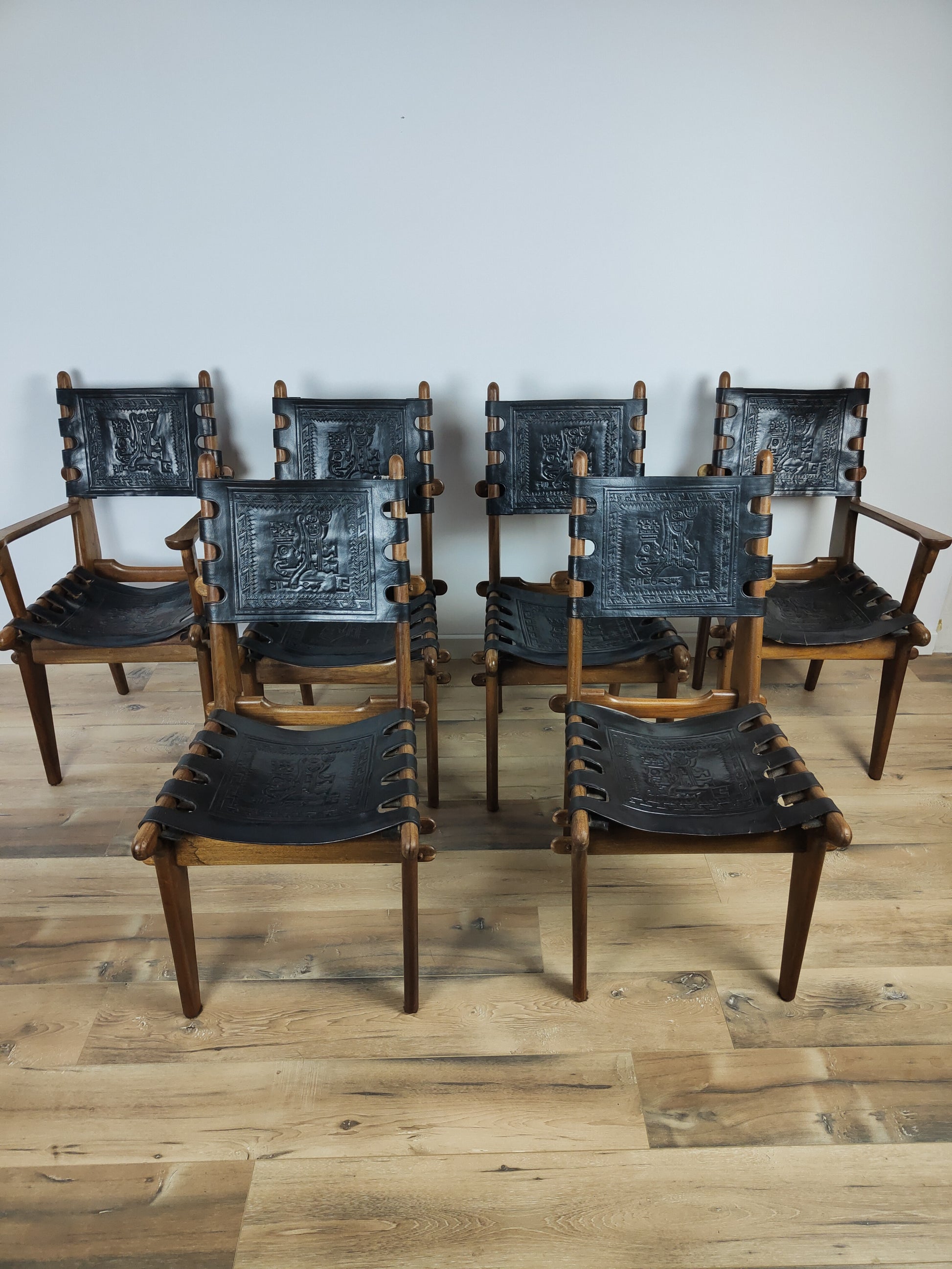 Set of vintage chairs, made by Angel Pazmino. (2 chairs left with arms)