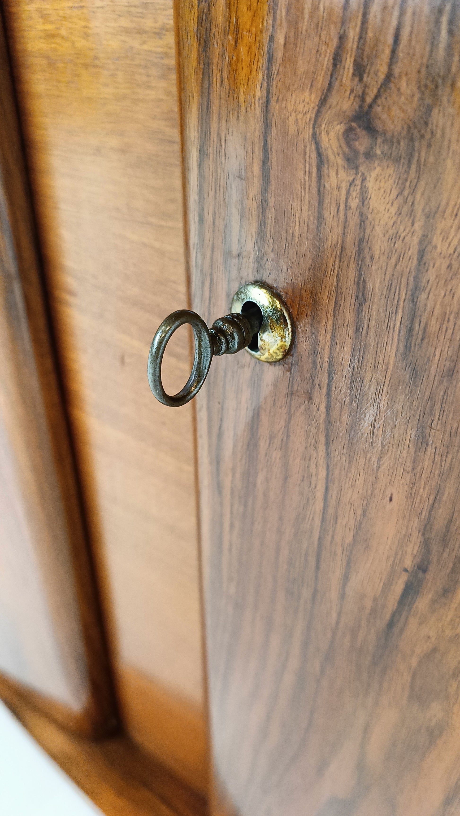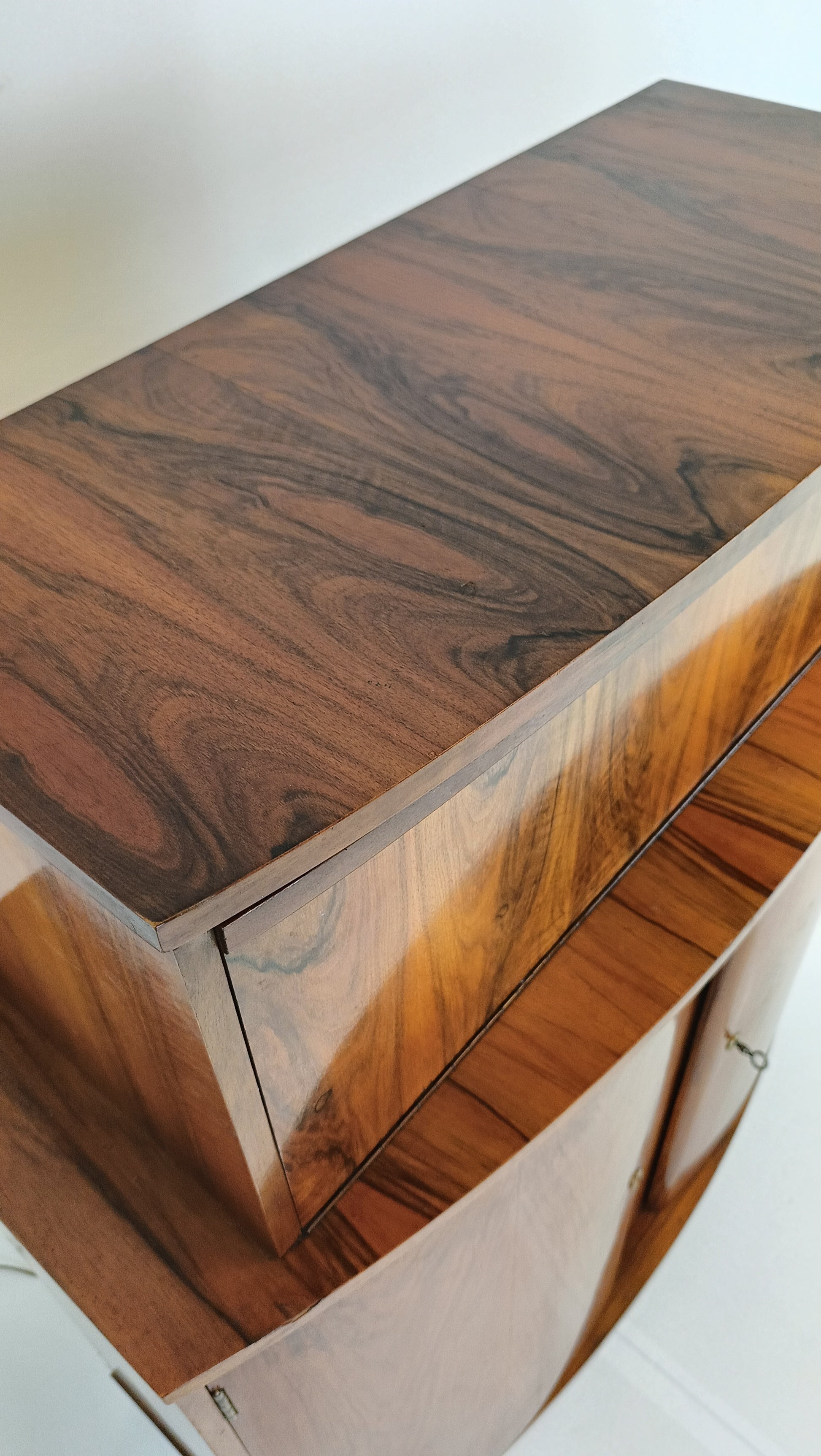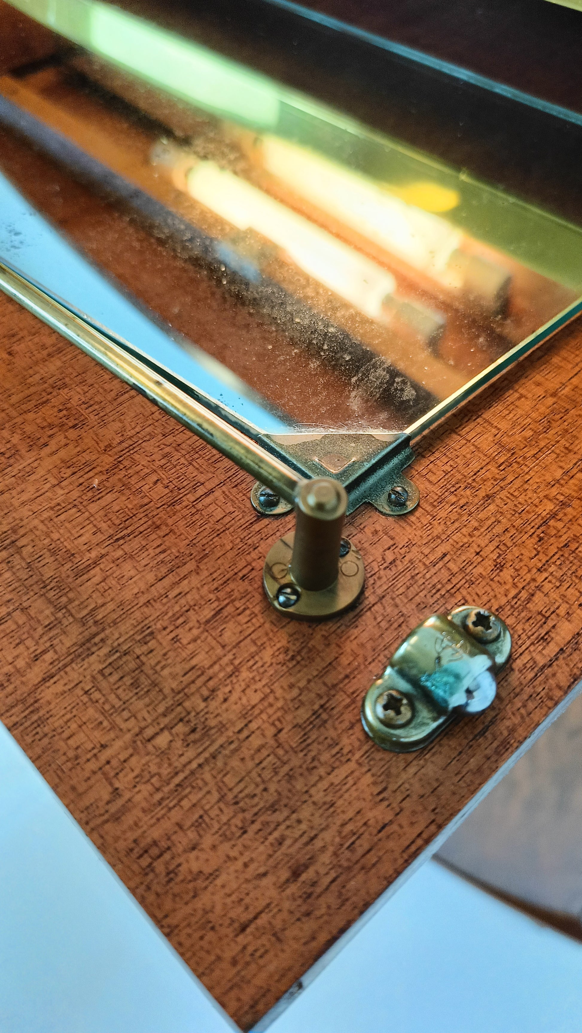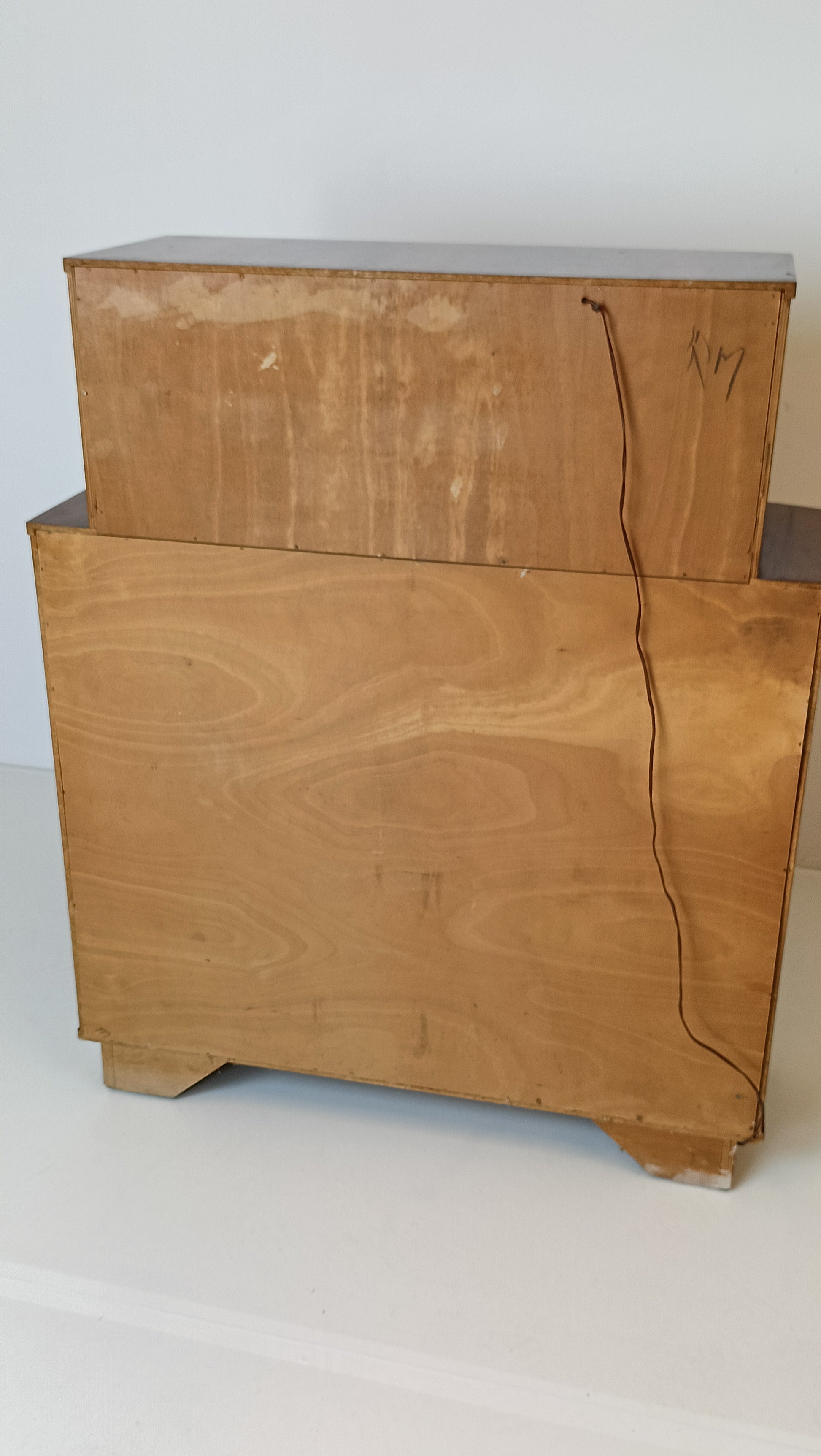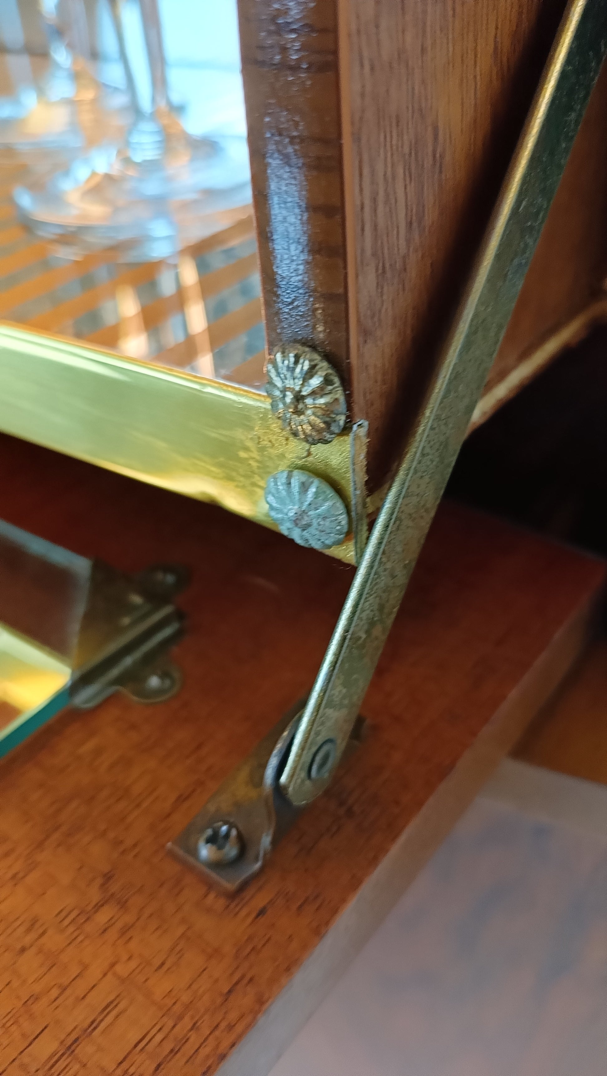 With summer in the air this incredible 1950s ‘Sureline’ George Serlin and Sons cocktail bar is bringing on the Cozy! Drop down front with Spectacular mirrored interior with atomic cocktail motifs to back glass, all original cocktail sticks present. Fab cherry red padded vinyl front on a walnut cabinet. Sat on brass tipped spindle legs. Just fabulous ✨⚡️✨ condition is exceptional. Light is fully working. Contains key for front doors.