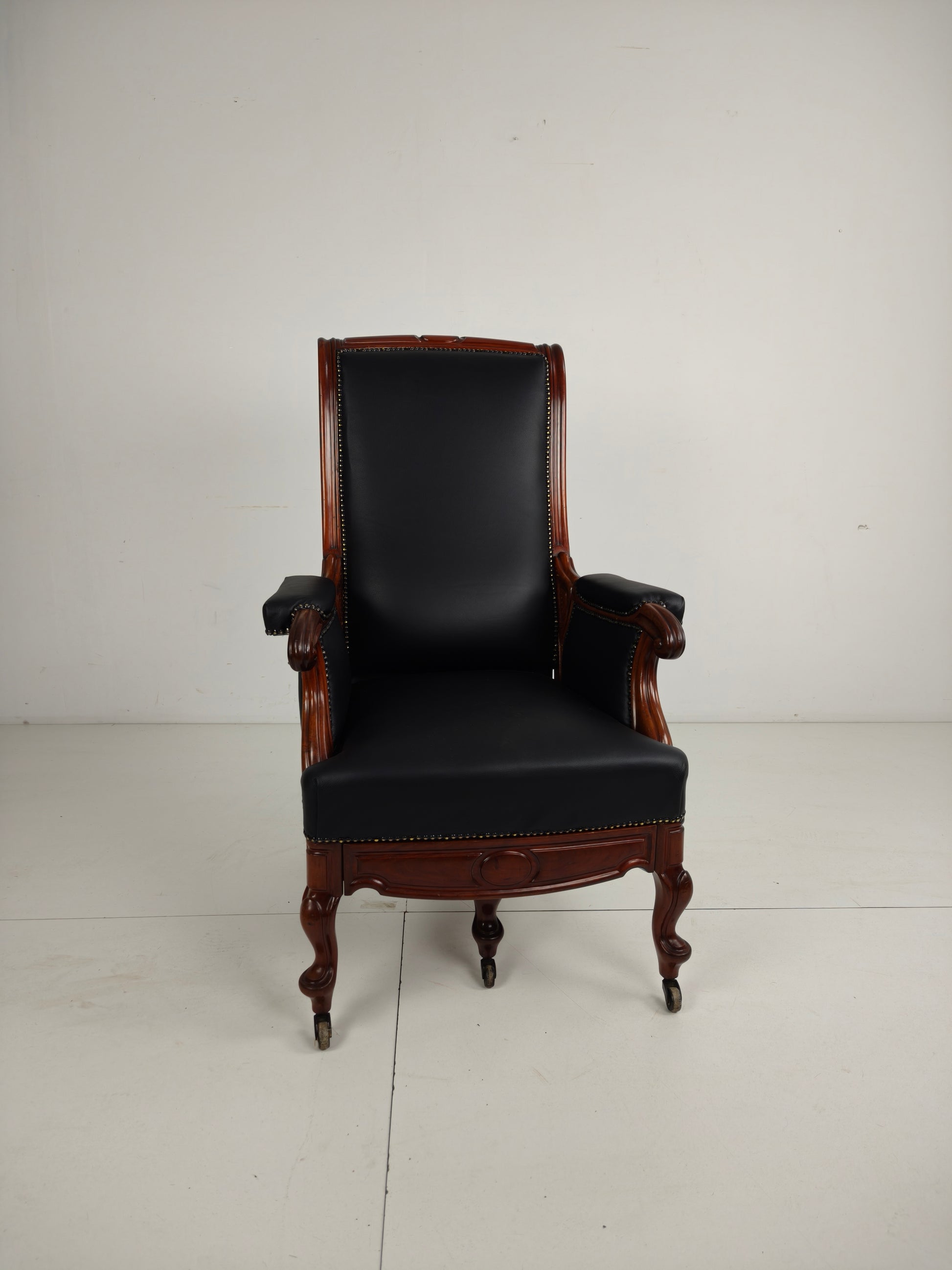 19th Century Antique Library Chair by Horrix – Black Leather